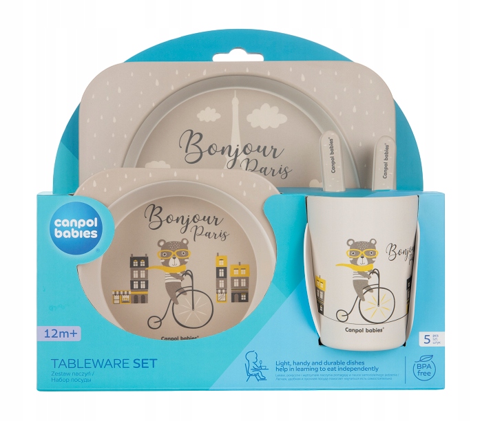 CANPOL BABIES - zestaw naczyń 5 elem. BONJOUR PARIS | beżowy
