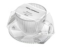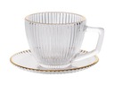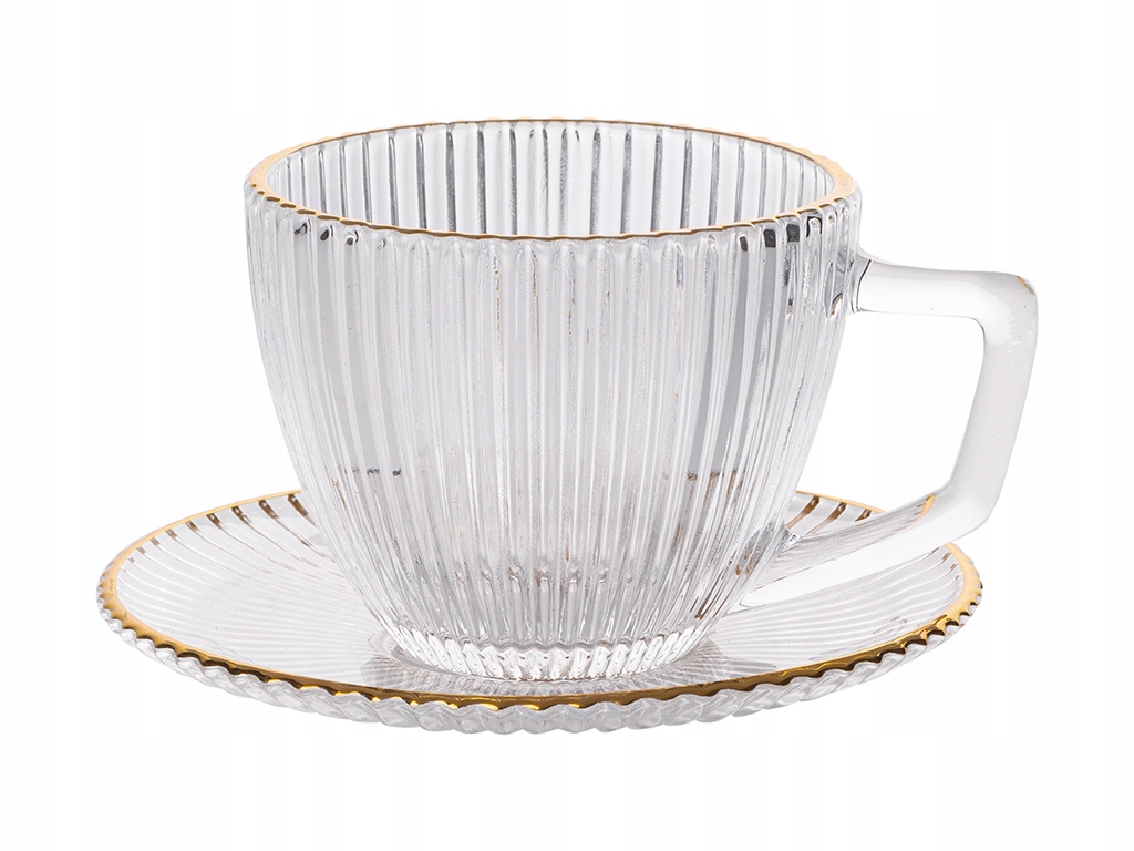 Szklana filiżanka ze spodkiem Rimini to propozycja, która łączy w sobie subtelną elegancję z nowoczesnym wyrafinowaniem. Harmonijny rytm pionowych żłobień podkreśla przejrzystość szkła, a delikatny złoty rant dodaje całości ponadczasowego charakteru, tworząc oprawę idealną dla aromatycznej kawy lub herbaty. Jej szlachetna forma sprawia, że każdy napój zyskuje wyjątkowy charakter, a codzienne chwile przy stole zamieniają się w drobny luksus. To dopracowany element zastawy, który pięknie prezentuje się samodzielnie i w komplecie, stanowiąc znakomity wybór dla wymagających miłośników stylu i jakości.