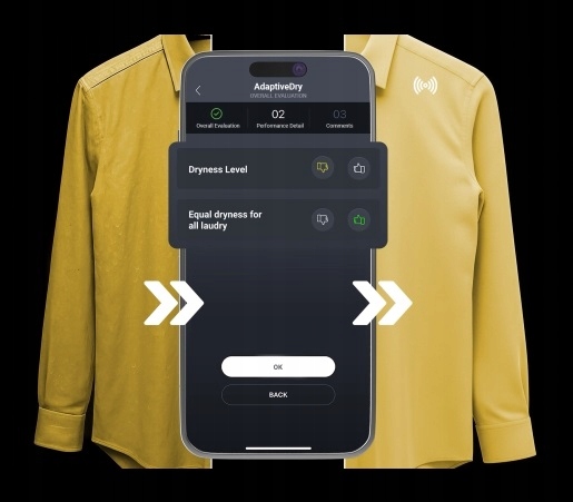Wystarczy, że połączysz suszarkę z aplikacją HomeWhiz, a AdaptiveDry - technologia wspierana przez sztuczną inteligencję - zadba o idealne ustawienie suszenia, analizując każdy cykl i dostosowując się do Twoich preferencji.