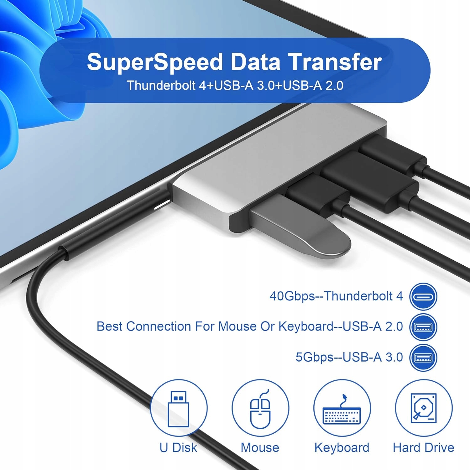 Aluminiowa obudowa skutecznie odprowadza ciepło, a lekka forma sprawia, że hub idealnie nadaje się do pracy mobilnej i podróży służbowych.