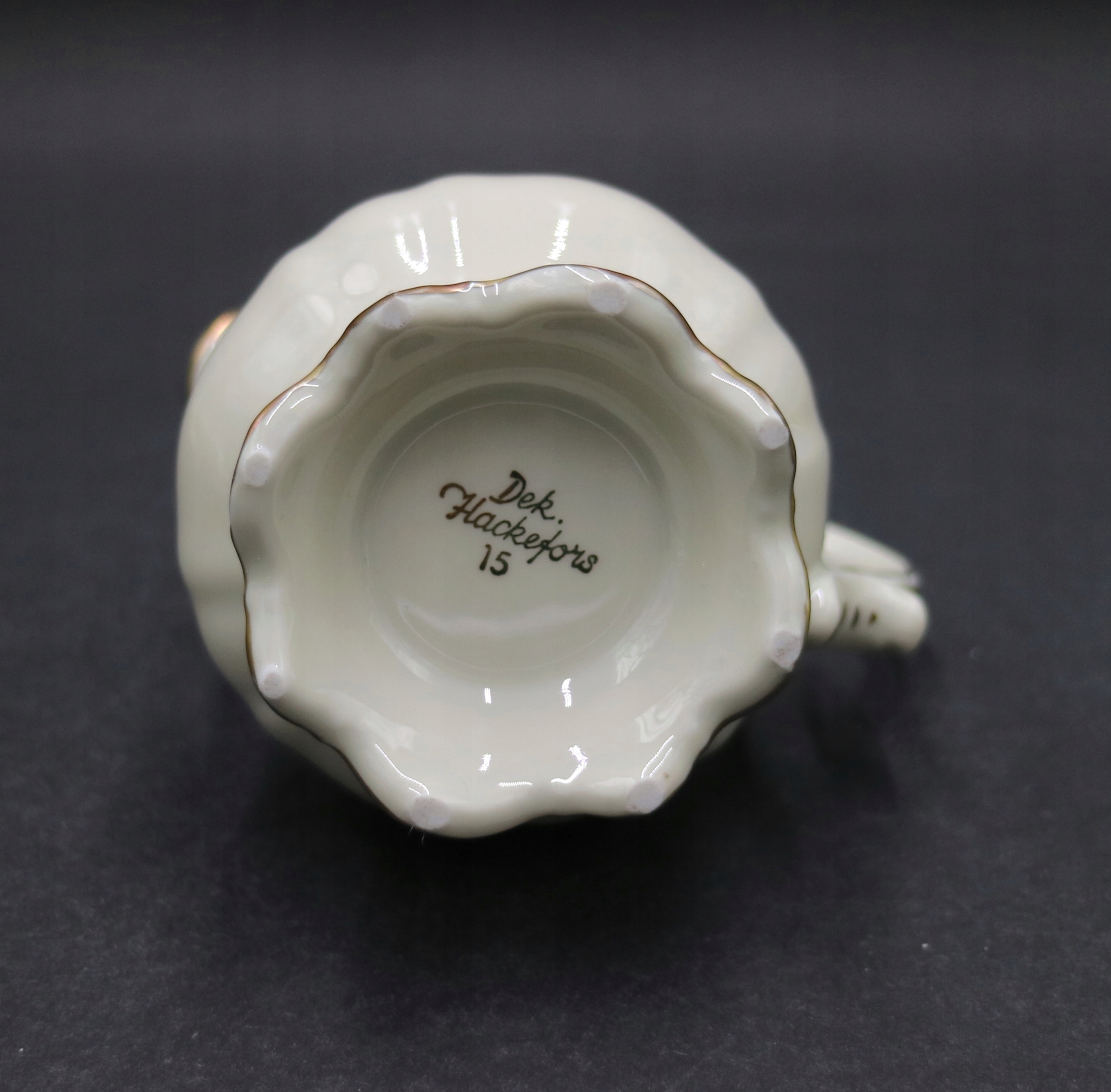 Brak sygnatury, ale dla porównania na innych aukcjach mam wystawiony dzbanek i cukiernicę do kompletu, proszę zobaczyć, że to jest ten sam wzór.