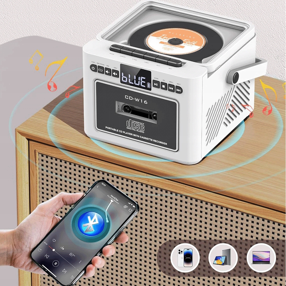 • ✨ Wszystko w jednym: CD, radio, kaseta, Bluetooth 5.1, USB, AUX i karta SD