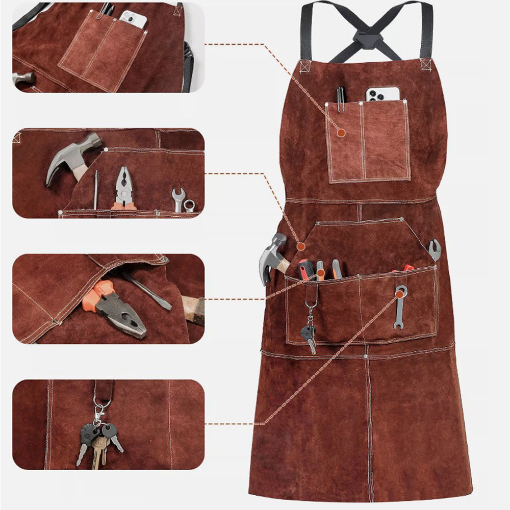 💥💥Fartuch Spawalniczy Skórzany 60X105cm 6 Kieszeni Odporny Na Iskry💥💥
