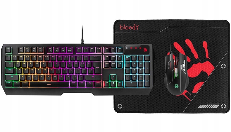 Zestaw Bloody B1700 to gotowy set idealny dla wszystkich miłośników gamingu. Pełnowymiarowa klawiatura z neonowym podświetleniem, mysz z regulacją czułości aż do 6000 DPI i podświetlenie RGB oraz duża, wygodna podkładka – taki zestaw powinien się znaleźć na każdym biurku gracza.
