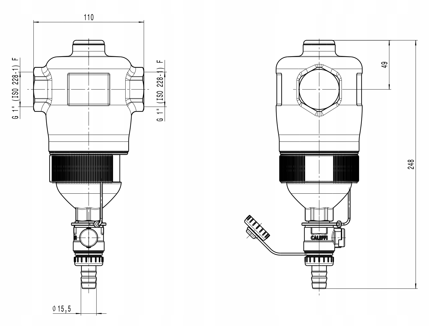 Zawór spustowy z króćcem do węża. Przyłącze górne z zaślepką. Wielkość separowanych cząstek do 5 µm.