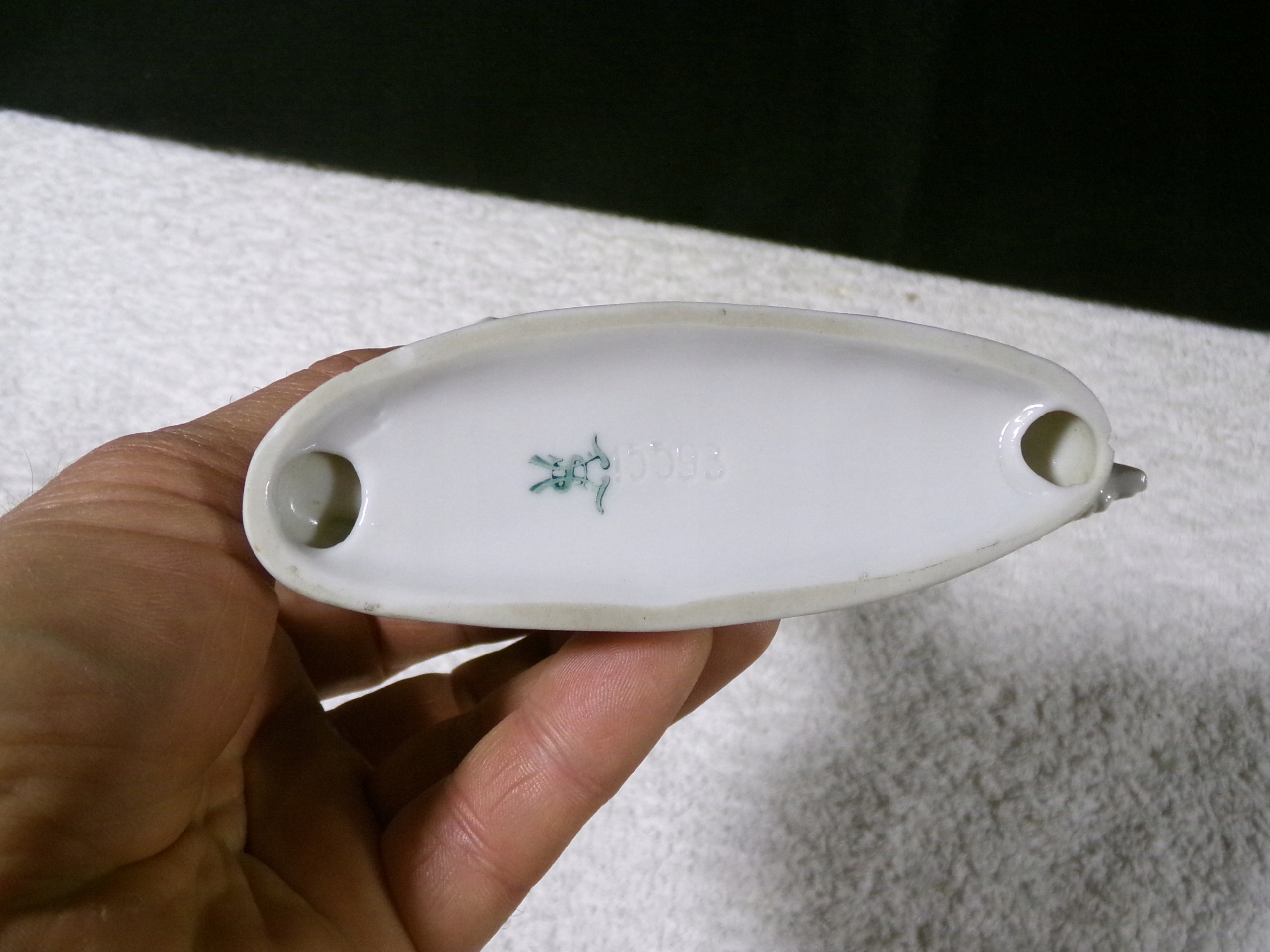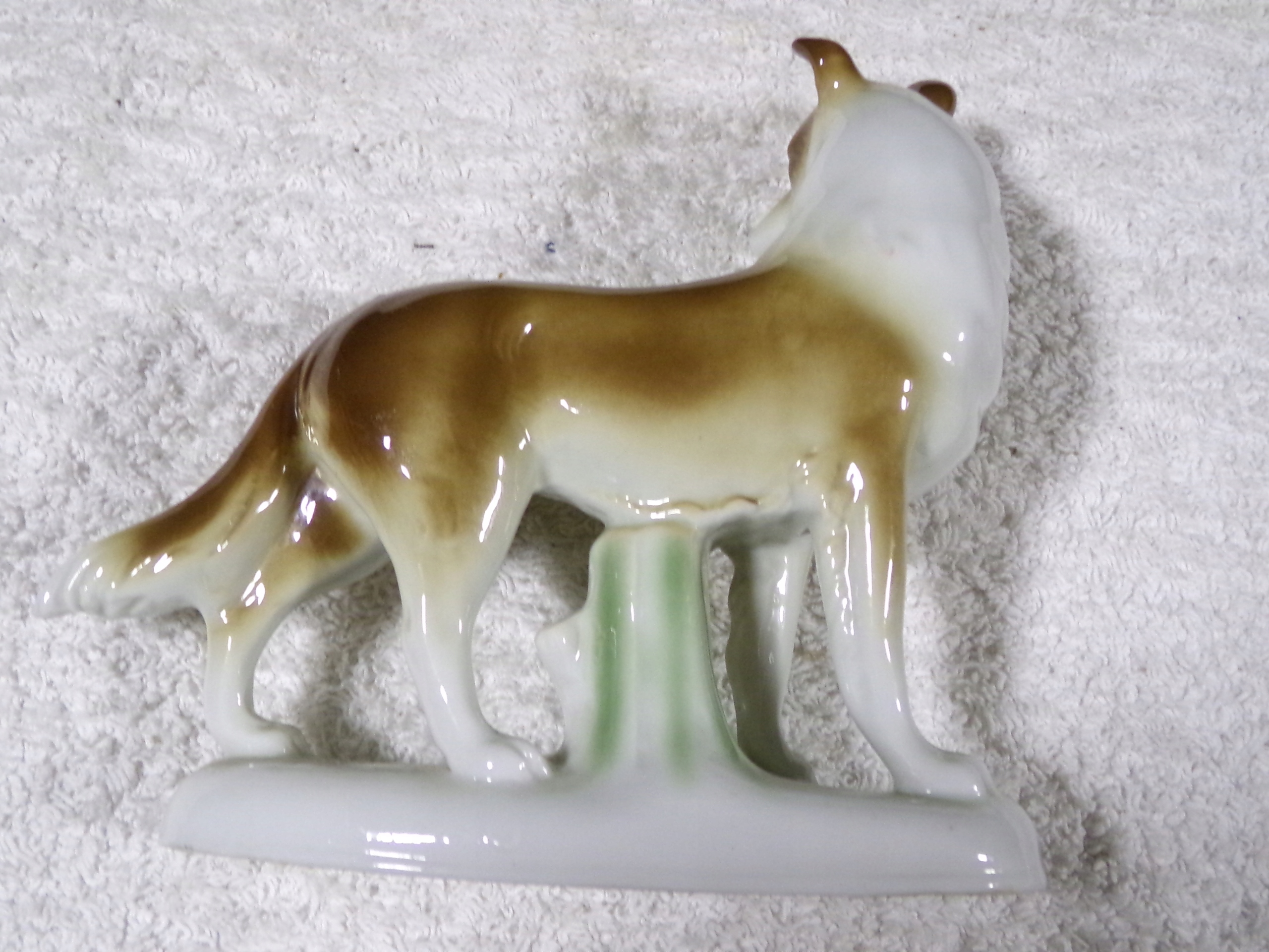 Piękna figurka z porcelany o średnicy 13x4 cm,wysokości 12,5 cm,wadze 0,17 kg.Stan zachowany dobry,wyszczerbione ucho,oraz na podstawie drobny odprysk.