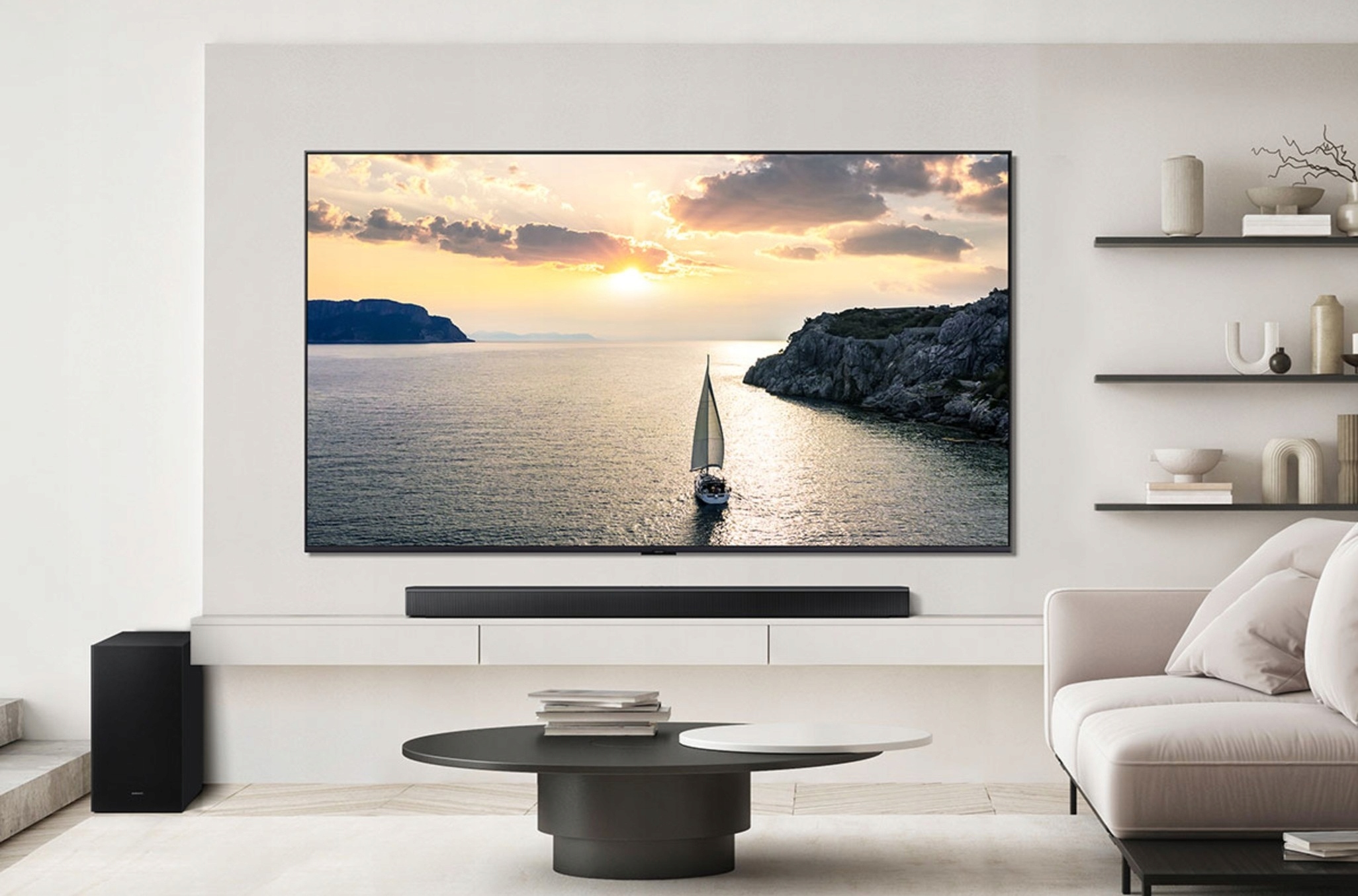 ▶️ Soundbar oferuje szerokie możliwości podłączenia – od HDMI ARC po bezprzewodowe połączenie Bluetooth, także z dwoma smartfonami jednocześnie. ▶️ Obsługa jednym pilotem telewizora Samsung sprawia, że sterowanie jest intuicyjne i wygodne, a minimalistyczny design doskonale wpisuje się w nowoczesne wnętrza.