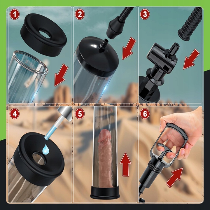 Cylinder wykonany z wytrzymałego, przezroczystego tworzywa umożliwia pełną kontrolę procesu, a manualna pompka z zaworem bezpieczeństwa pozwala precyzyjnie regulować poziom podciśnienia. Dołączone trzy silikonowe uszczelki o różnych średnicach umożliwiają indywidualne dopasowanie, poprawiają szczelność i komfort użytkowania.