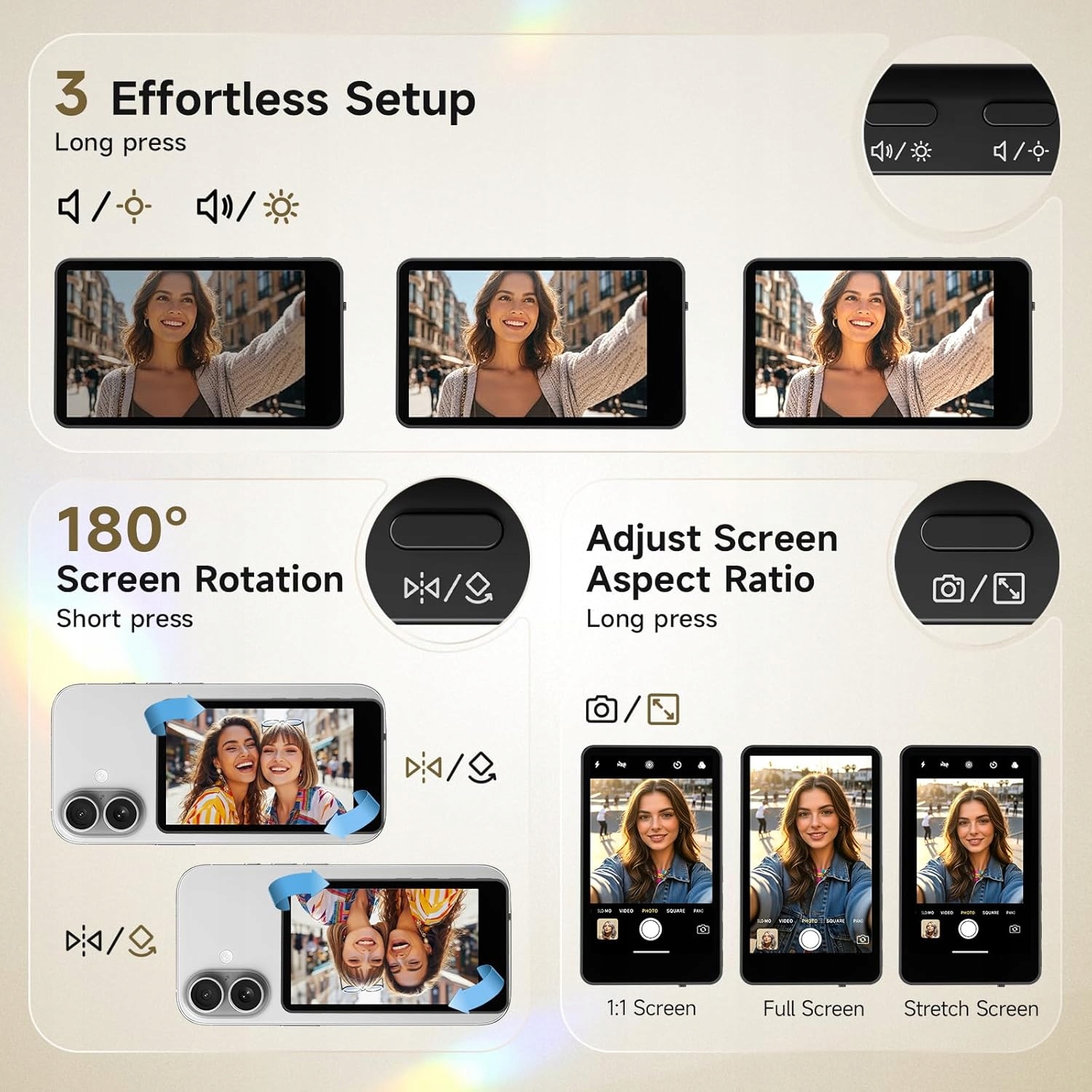 Rollei M4 to kompaktowy, magnetyczny monitor do selfie, który wyświetla w czasie rzeczywistym obraz z tylnej kamery. Dzięki 4K 30fps, niskim opóźnieniom i zasięgowi do 50 m możesz precyzyjnie kadrować vlogi, transmisje na żywo i nagrania z podróży. Monitor pozwala szybko poprawić kadr i ekspresję, co skraca czas montażu i poprawia jakość publikowanych materiałów.