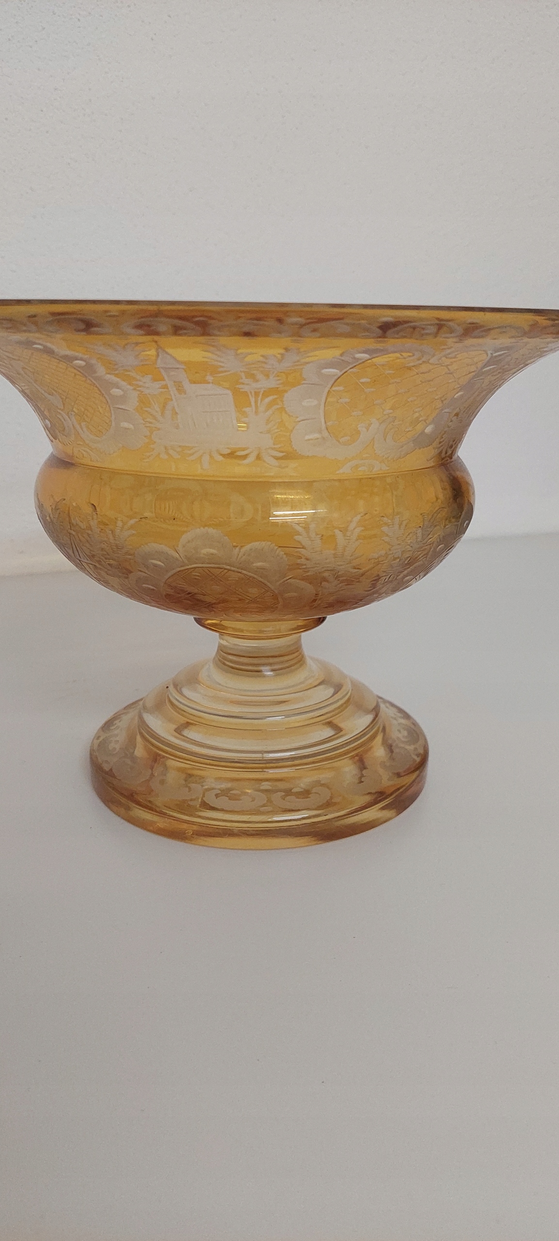 Patera o wymiarach wysokość 15cm, średnica 21.5cm. Patwra posiada drobne ryski oraz 3 malutkie niezauważalne czipu od spodu na rancie.