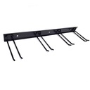 6 mocnych haków rozmieszczonych tak, aby pomieścić wiele narzędzi jednocześnie – narzędzia ogrodowe, miotły, grabie, lopaty, szczotki, a nawet sprzęt elektryczny jak podkaszarki.