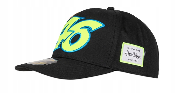 Czapka z daszkiem o średnim daszku z kolekcji VR46 Heritage Valentino Rossi, linii dedykowanej markom i historycznym momentom w karierze Valentino. Wykonana z bawełny i materiału typu baseball, z przodu zdobi ją haft z numerem 46 i słońcem, po bokach grafika księżyca oraz metka wyróżniająca projekt VR46 Heritage. Z tyłu wyszyte jest logo Rossifumi.