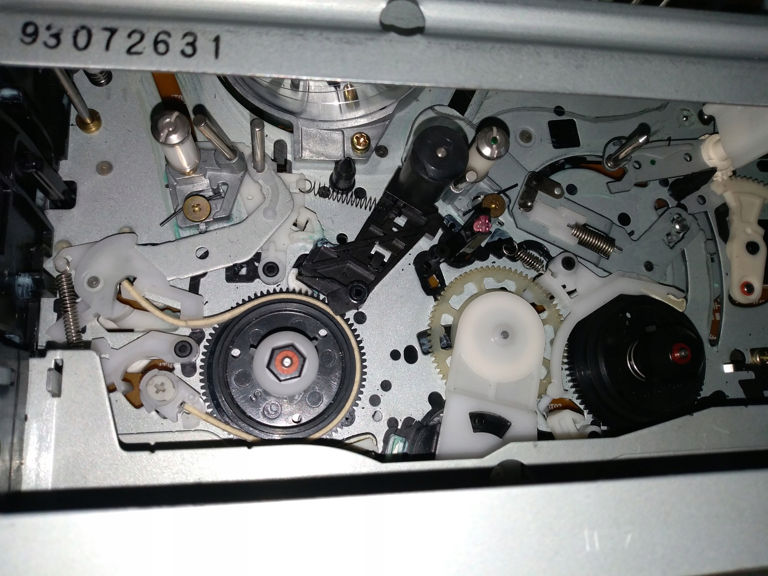 Оборудование он включился, загрузил кассету, и на мгновение изображение взлетело, но какой-то шкив упал (который я прикрепляю) ну и перестало работать доработка что приводит к так называемому натягиванию ленты, затем он сломался ремень от механизма втягивания кассеты, и я оставил его в покое; -)