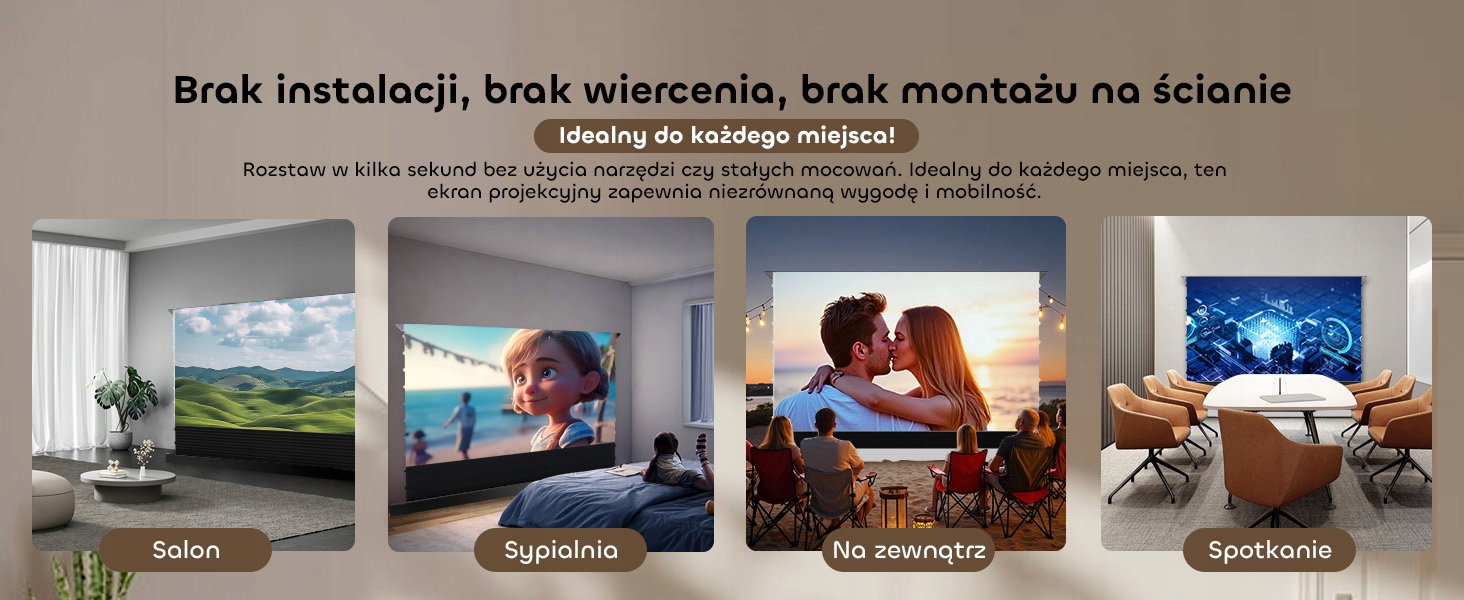 ✅ Mobilne kino – możesz przenieść ekran między pomieszczeniami (np. dom/biuro)