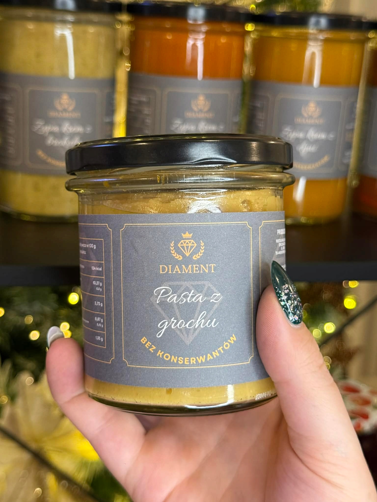 Nasze masełko z grochu powstaje w Restauracji Diament w Bornem Sulinowie, z naturalnych składników i według tradycyjnych receptur. Bez sztucznych dodatków — wystarczy otworzyć i cieszyć się pysznym, kremowym smakiem.