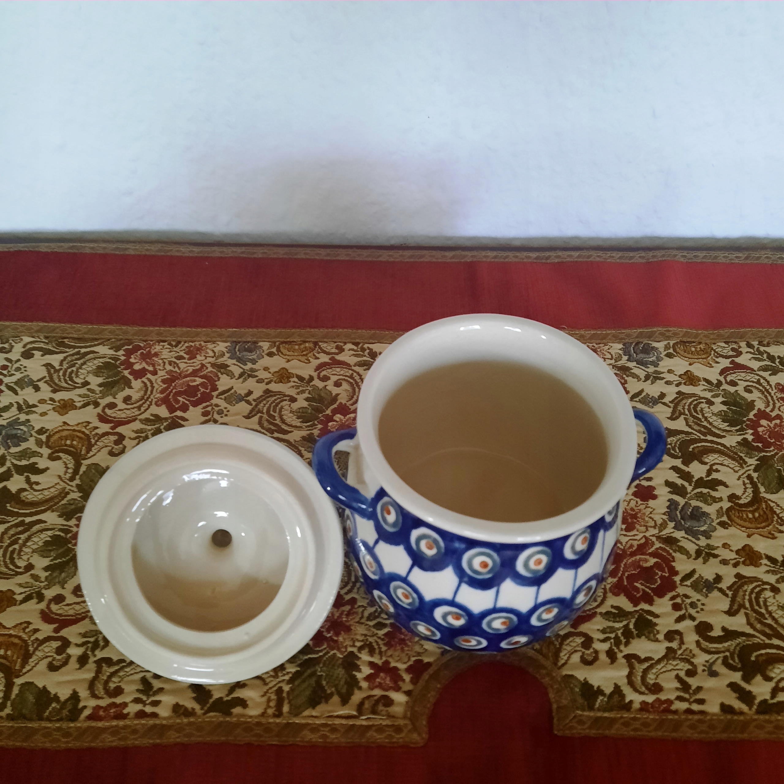 Przedmiotem licytacji jest piękny garnek- kociołek z Bolesławca. Stan bardzo dobry, bez uszkodzeń i wyszczerbień. Proszę obejrzeć zdjęcia, przedstawiają stan faktyczny. Licytujecie Państwo przedmiot widoczny na zdjęciach.