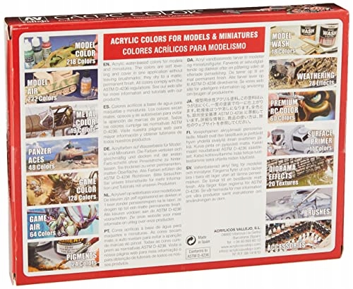 Zestaw 16 kolorów Game Color do malowania modeli i figurek. Zawiera butelki po 18 ml/0,57 fl.oz. i kartę kolorów.