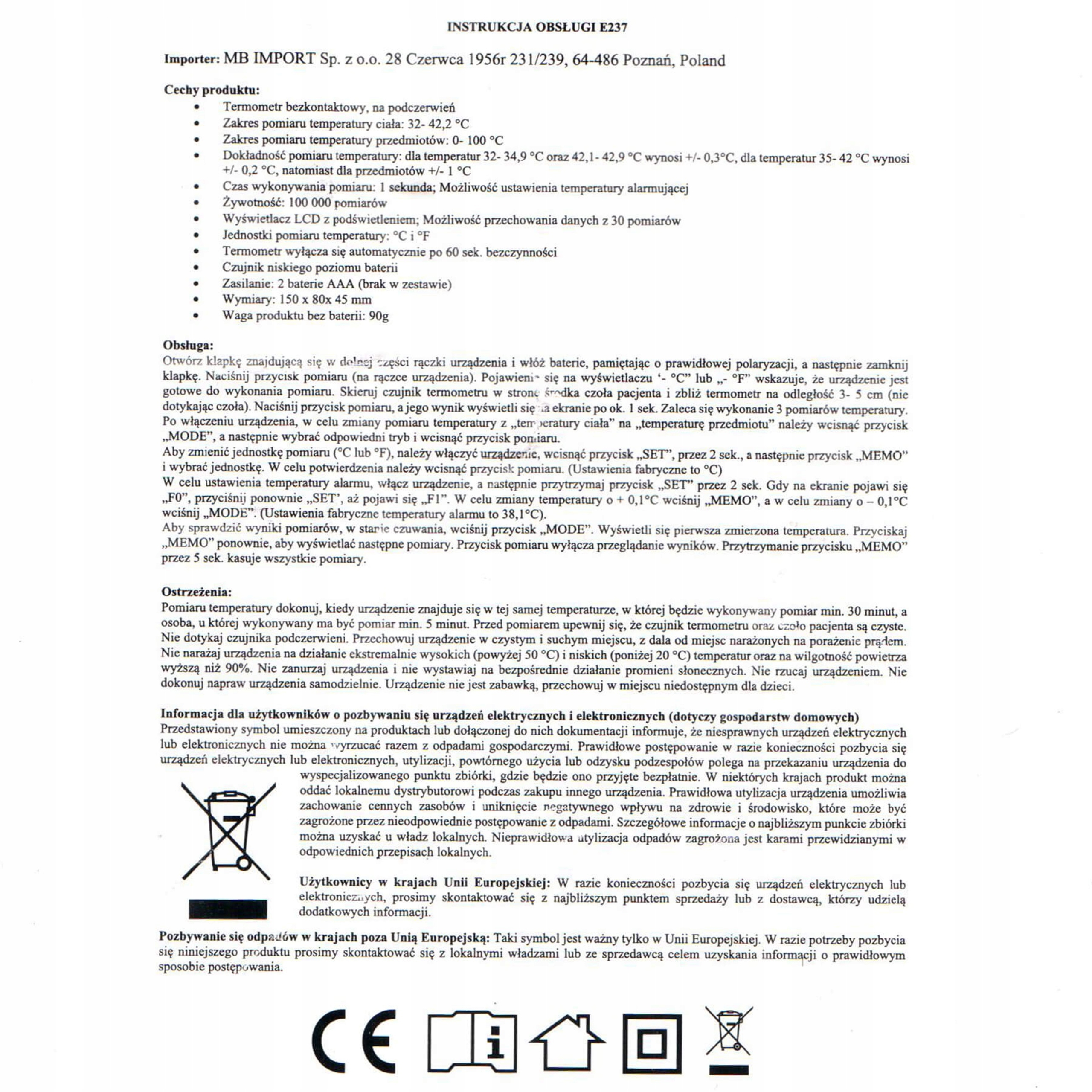 Диапазон измерения температуры тела составляет от 32 до 49,5 градусов Цельсия. Диапазон измерения температуры предметов составляет от 0 до 100 градусов по Цельсию. Термометр это очень точно – измерение точное в / - 0,2 градуса Цельсия. Время выполнения измерение происходит очень быстро, так как составляет всего 1 секунду, что гарантирует возможность выполнения несколько измерений за одну минуту.