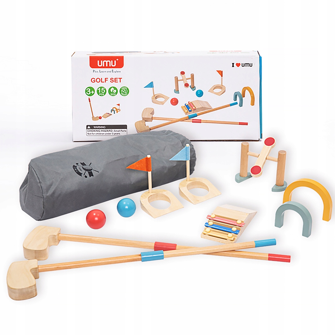 Ten drewniany zestaw mini golfa UMU to idealna zabawka sportowa dla dzieci od 3 roku życia – bezpieczna, pięknie wykonana i niesamowicie kreatywna!
