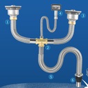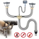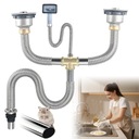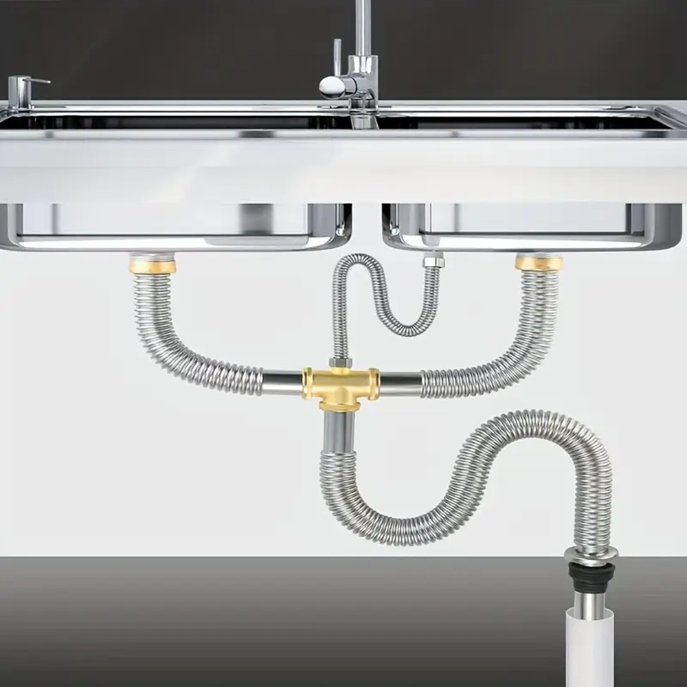 Złączki do rur odpływowych zlewozmywaków dwukomorowych, zestaw rur odpływowych ze stali nierdzewnej z elastyczną rurą syfonową. Nadaje się do szerokiego zakresu zastosowań, może być instalowany bezpośrednio w systemach odpływowych kuchni, łazienek i toalet, spełniając różnorodne wymagania za pomocą jednego zestawu.