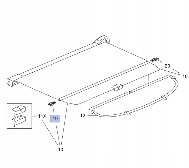 Oryginalny lewy ślizg rolety bagażnika - 2345559 / 13431177