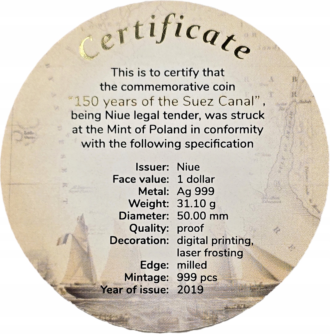 Niue. 1 dolar 2019, 150-lecie Kanału Sueskiego - KOMPAS - UNCJA SREBRA
