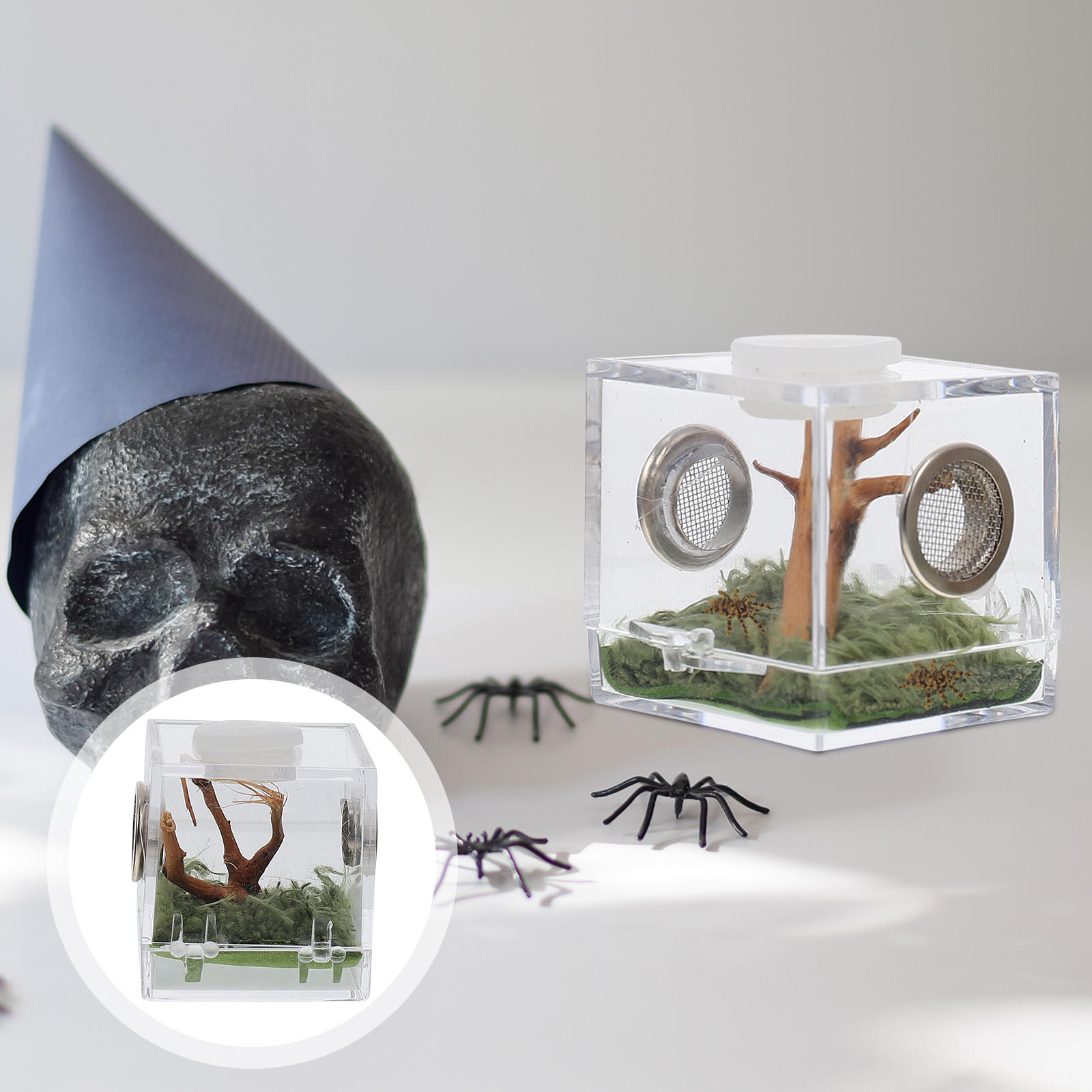 ✅Są to pudełka do hodowli pająków, które są wykonane z wysokiej klasy materiału, bezpiecznego i trwałego dla Twojego małego zwierzaka przez długi okres użytkowania. Solidny materiał, możesz je posiadać przez wystarczająco długi czas. Lekki i kompaktowy rozmiar, bardzo przenośny.