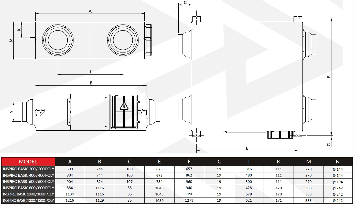 Wykonana ze stali, pokryta dodatkowo materiałem izolacyjnym poprawiającym jej właściwości akustyczne i termiczne. Posiada wygodne uchwyty umożliwiające łatwy montaż urządzenia. Króćce wentylacyjne wykonane z tworzywa. W obudowie znajdują się drzwiczki rewizyjne pozwalające na bezproblemowy dostęp do filtrów i wymiennika.