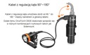 Latarka o maksymalnej mocy 4000 lumenów z regulacją kąta kabla wychodzącego z kanistra, umożliwiającą obrót 90°~180°. Akumulator o dużej pojemności zapewnia 5 godzin pracy w najmocniejszym trybie świecenia. Pakiet baterii można również wyjąć i wykorzystać jako Power Bank.