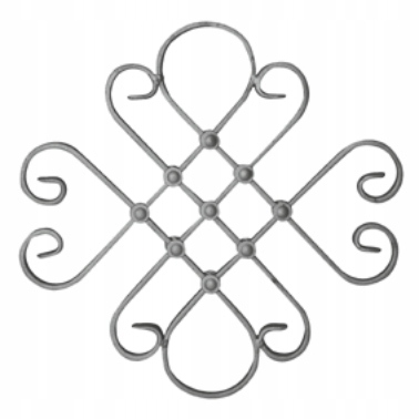 Stalowa rozeta z płaskownika 16x8 o wymiarach 400x400mm. Idealnie nadaje się do ozdobienia balustrad, bram, ogrodzeń, furtek, bądź wyrobów metaloplastycznych. Można ją wkomponować w pręty, profile lub przęsła ogrodzeniowe, dzięki czemu ogrodzenia zyskują indywidualny i oryginalny wygląd.