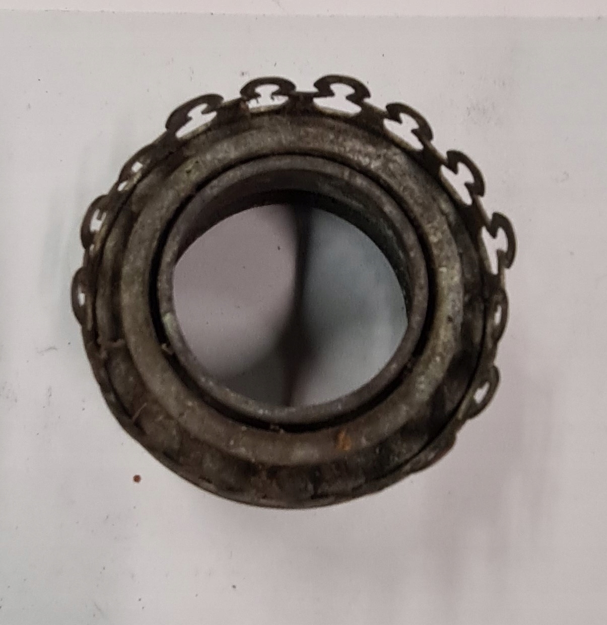 Przedmiot sfotografowany obok miarki, aby ułatwić ocenę jego wymiarów.