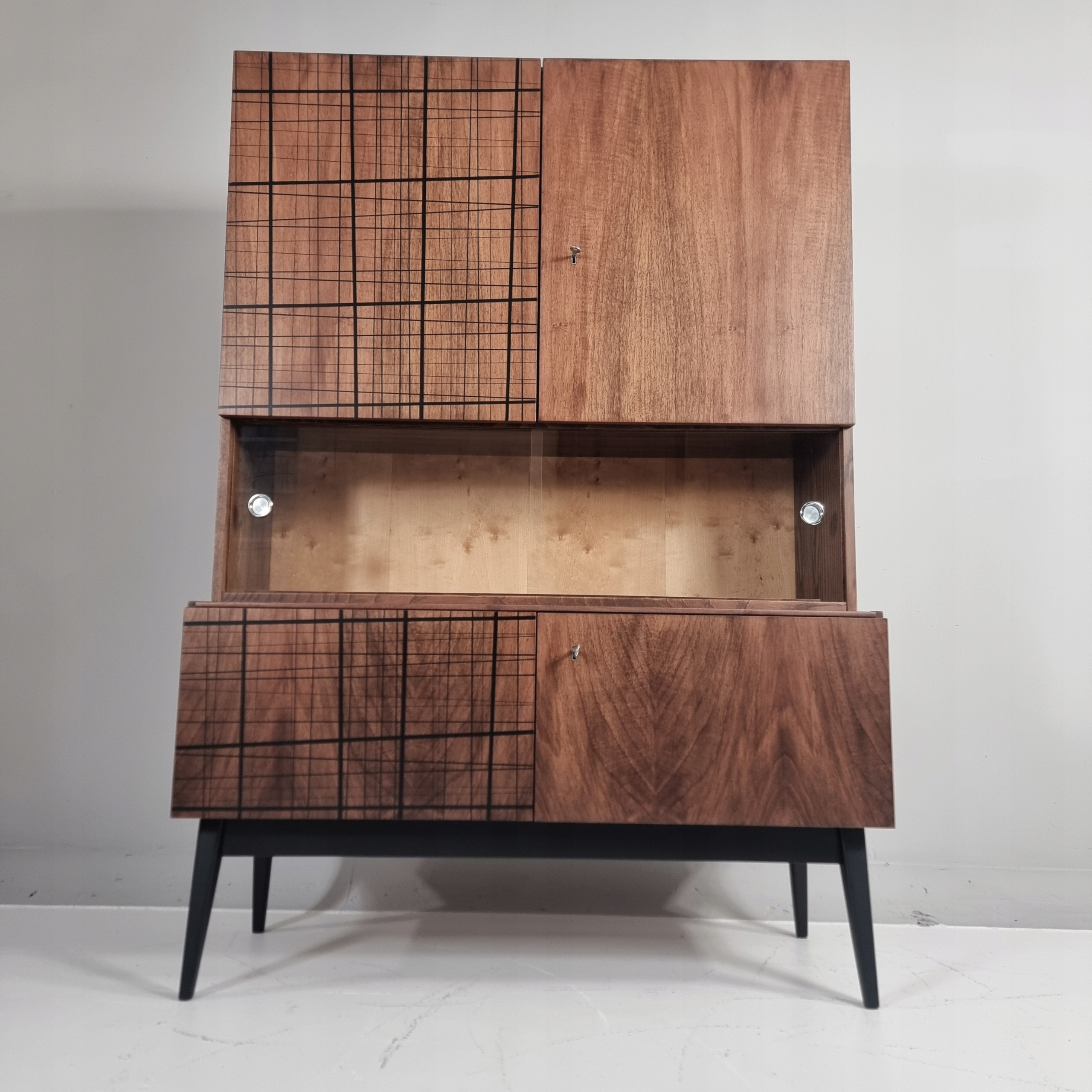 Na sprzedaż kredens z lat 70.Stan bardzo dobry.Fornir jesionowy i orzechowy.