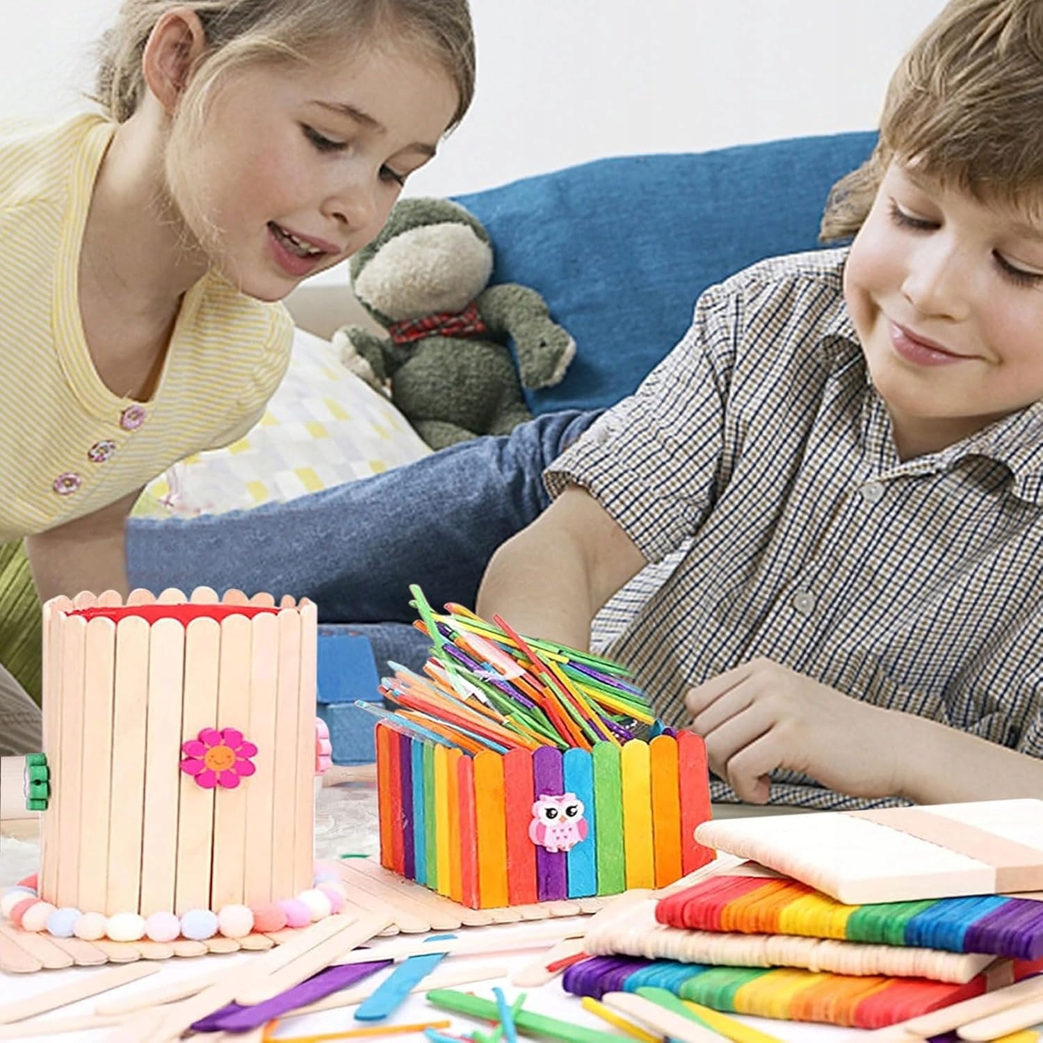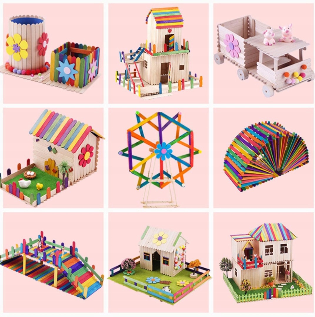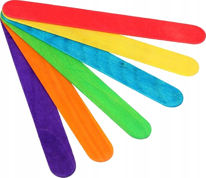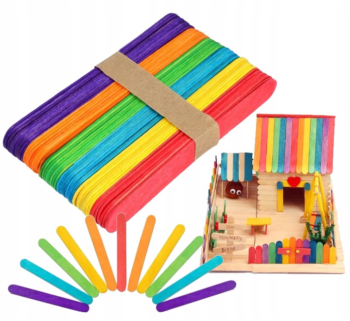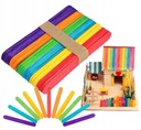DREWNIANE PATYCZKI KOLOROWE KREATYWNE DO LODÓW ZABAWY RĘKODZIEŁA 50szt