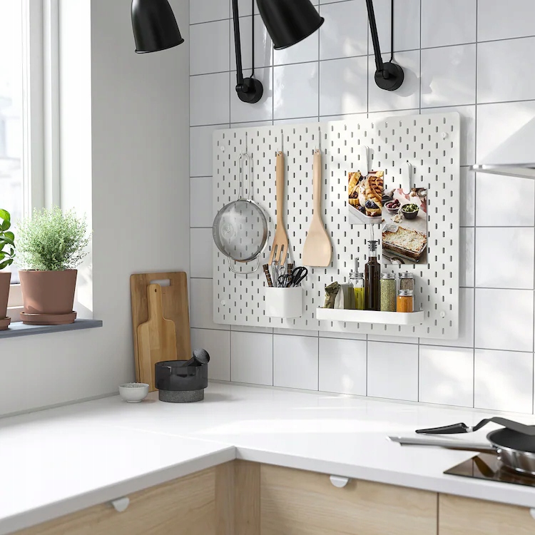 Tablicę narzędziową SKÅDIS i akcesoria można wykorzystać do zaprezentowania swoich ulubionych rzedmiotów, jednocześnie utrzymując porządek w domu.