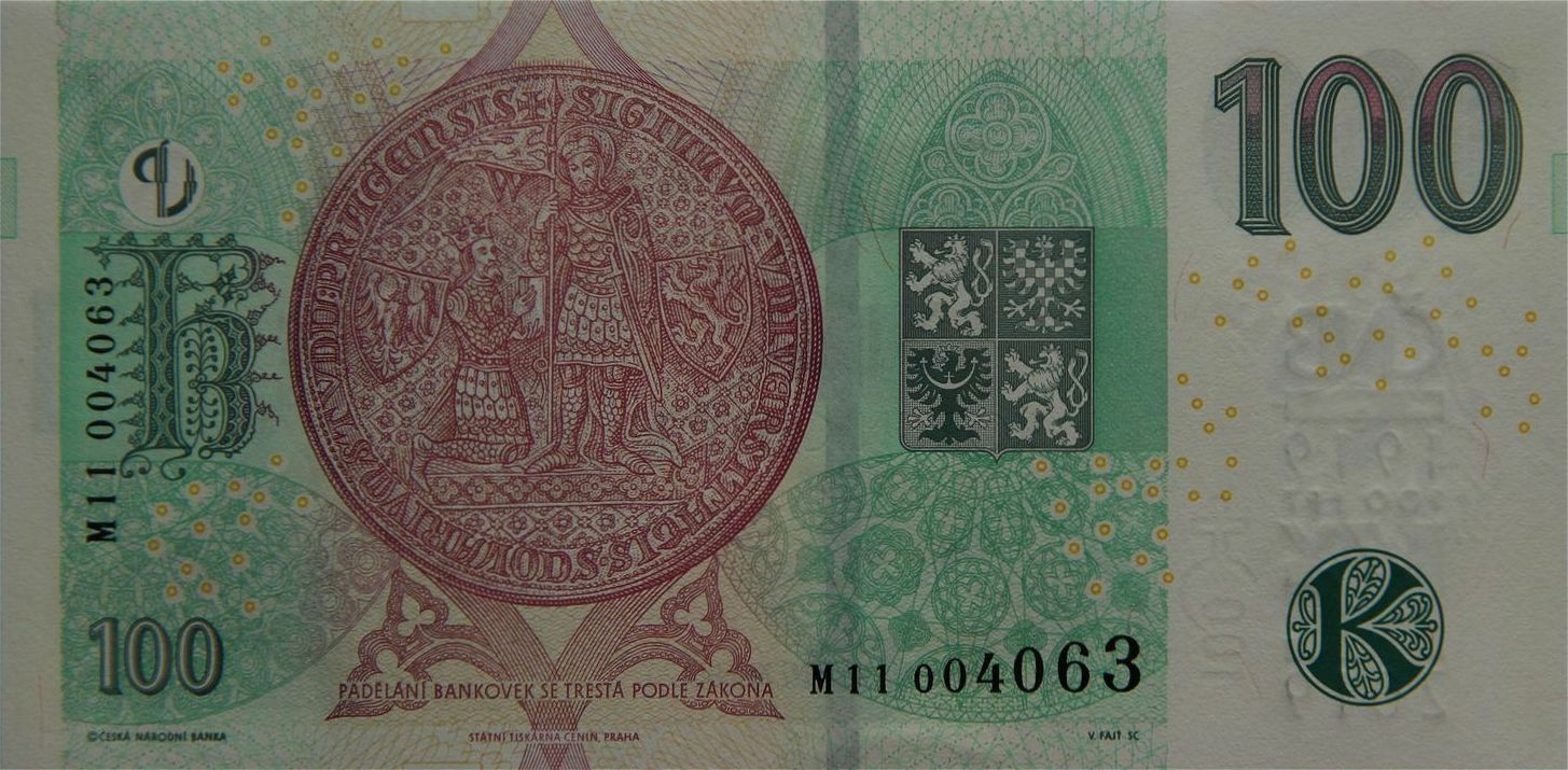 Przepiekny okolicznościowy banknot 100 Korun z Czechy - 2019r. (P-28) w absolutnie doskonalym stanie bankowym I (UNC).