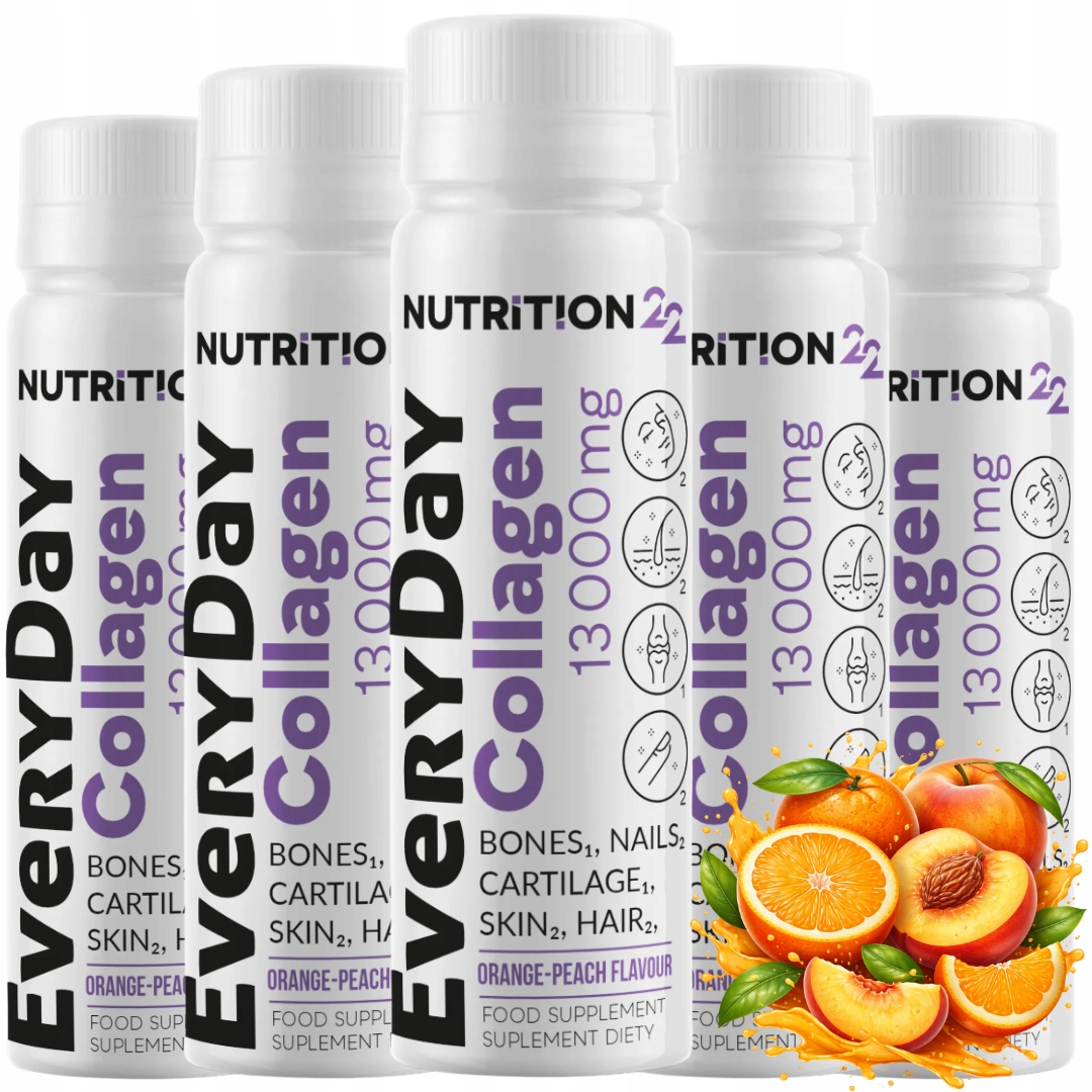 Everyday Collagen 13 000 mg to wygodna, gotowa do wypicia porcja hydrolizowanego kolagenu wołowego z dodatkiem witaminy C, cynku oraz wybranych witamin i minerałów. Jedna buteleczka (80 ml) dostarcza aż 13 000 mg kolagenu, a także zestaw składników, które wspierają skórę¹, włosy², paznokcie² i kości¹ – idealny jako element codziennej rutyny dbania o wygląd i kondycję organizmu. Suplement diety. Produkt pasteryzowany.