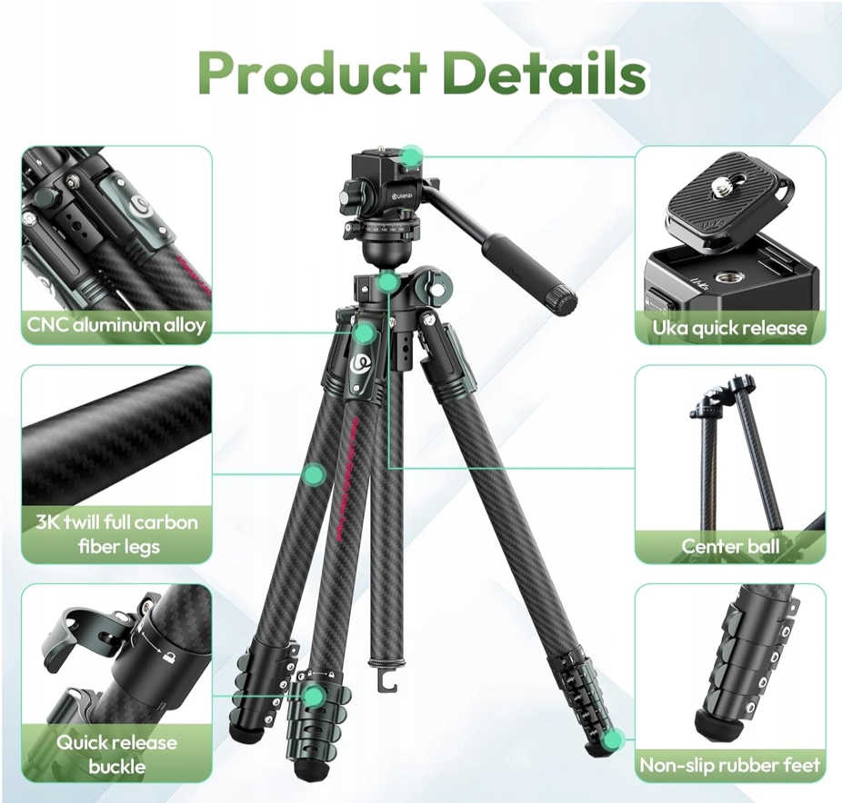 Zupełnie nowy statywu wideo Ulanzi JJ06 GlideGo z włókna węglowego jest już dostępny! Nogi tego statywu wykonane są z 10 warstw włókna węglowego 3K, z wykorzystaniem precyzyjnej obróbki CNC. Powierzchnia jest szlifowana, co nadaje jej klasyczny wygląd. Korpus statywu wykonany jest ze stopu aluminium lotniczego, co zapewnia wyjątkową trwałość i stabilność.