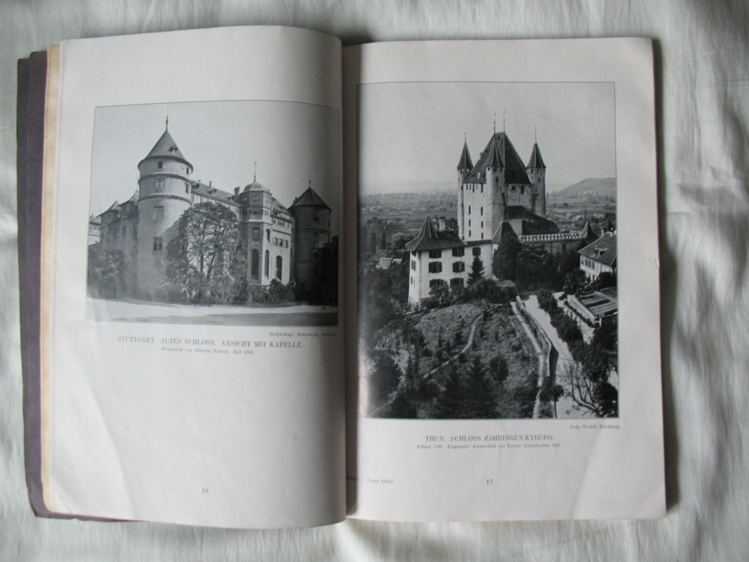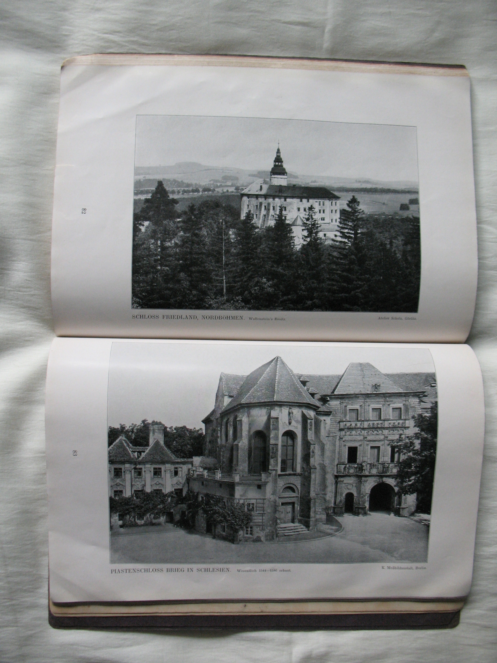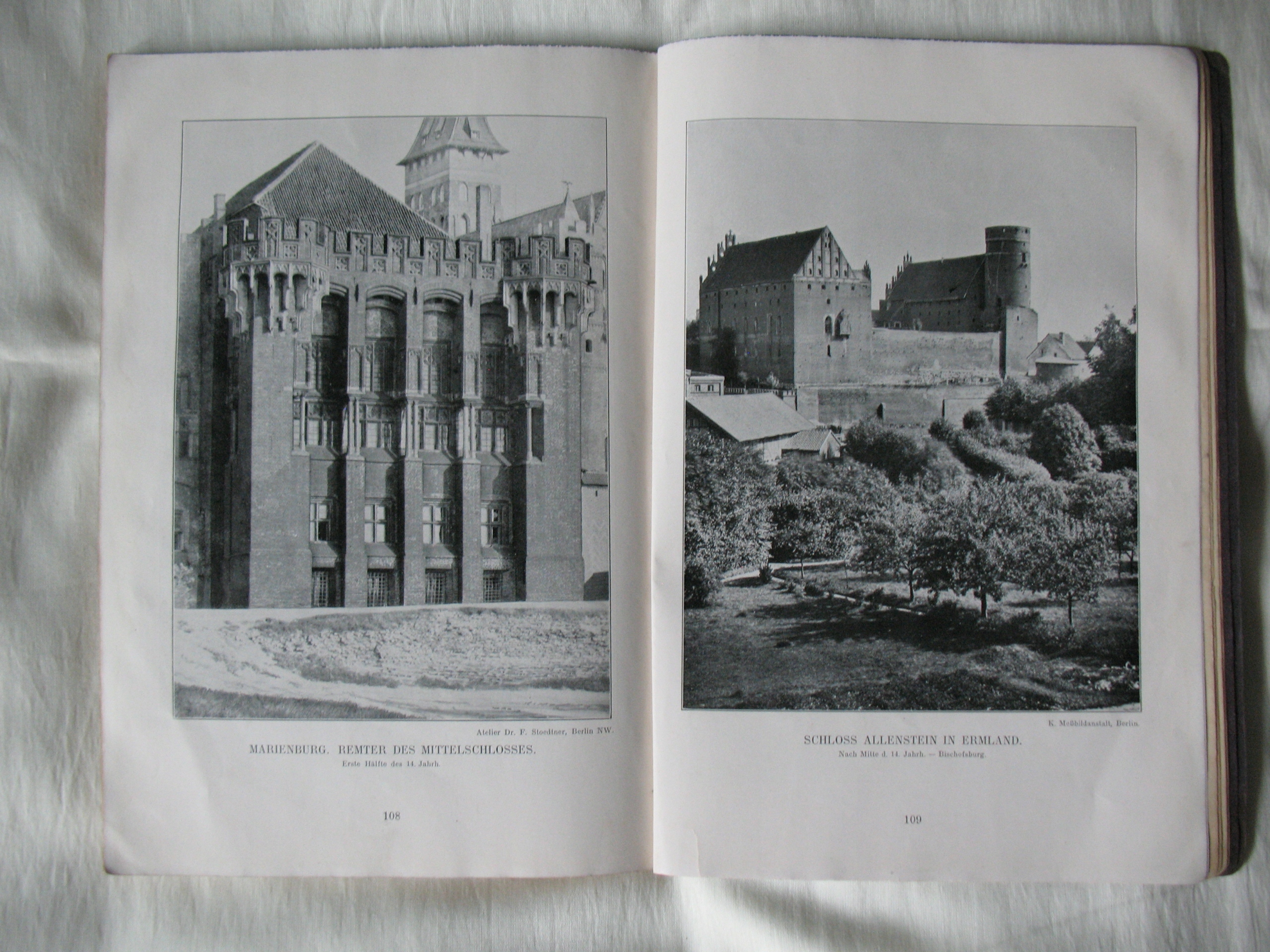 Stara, oryginalna książka-album: Deutsche Burgen-Zamki Niemieckie. Oryginał. Papier kredowy. 128 stron + miękka okładka - kompletna. W środku także zdjęcia zamków obecnie leżących w Polsce. Przykładowa zawartość na skanach. Datowanie: lata międzywojenne. Wymiary: 190 x 265 mm. Stan zachowania: według mnie -db, podniszczona okładka i grzbiet, na kilku stronach niewielkie naddarcia na obrzeżach, niewielkie zabrudzenia, na 2 stronach z tekstem porysowania kredką, wszystko widoczne na skanach. Zapraszam do zakupów.
