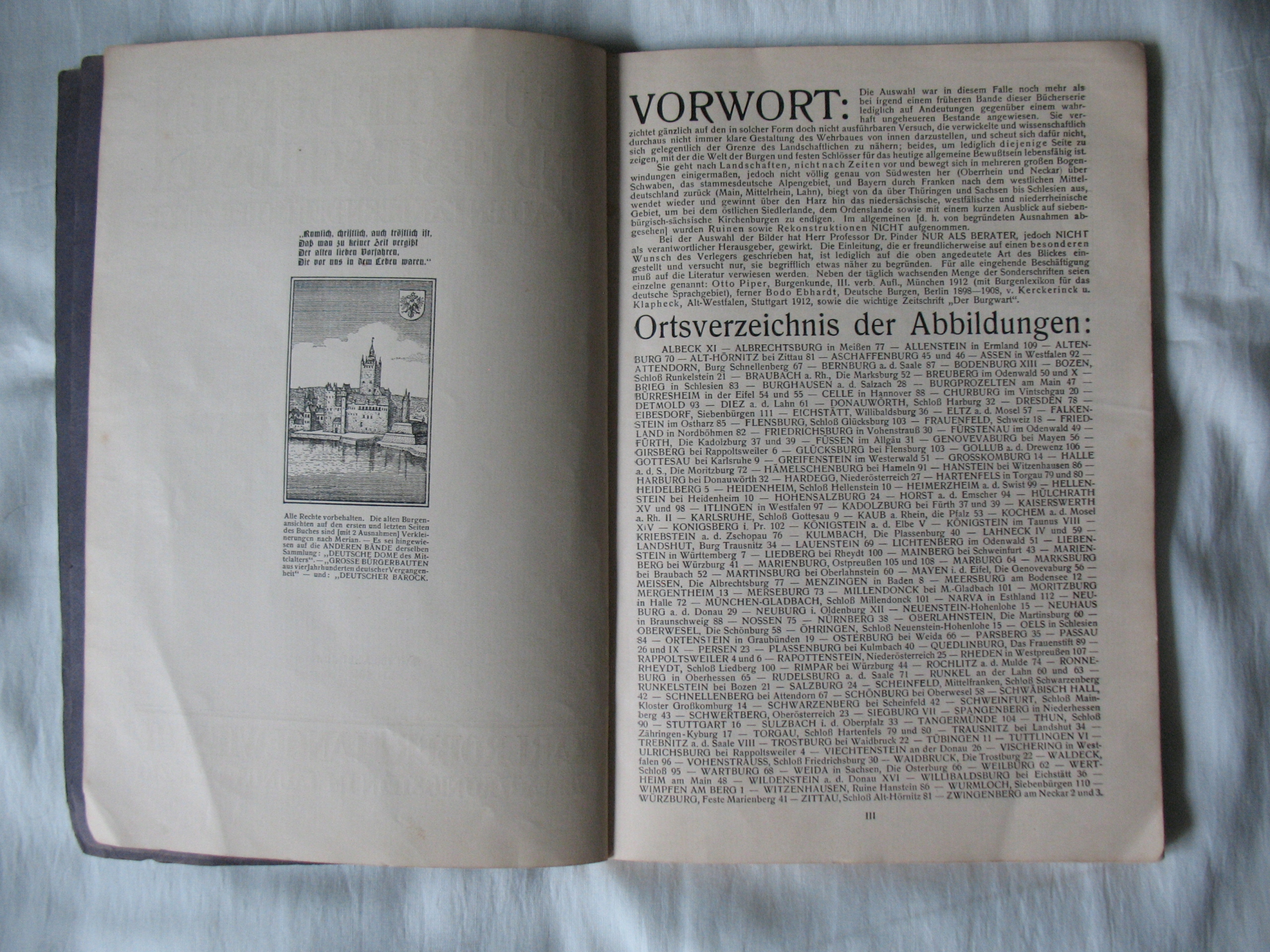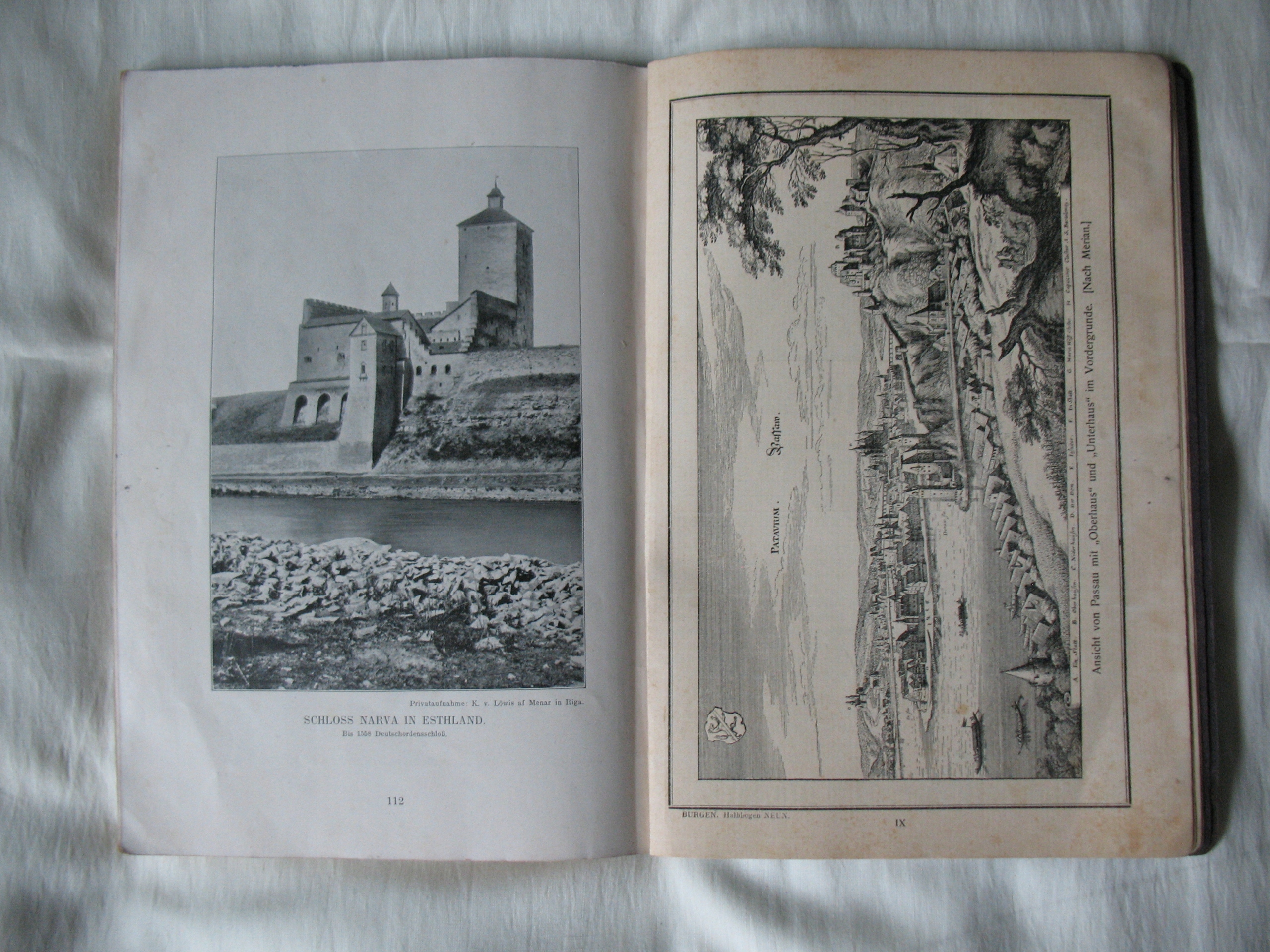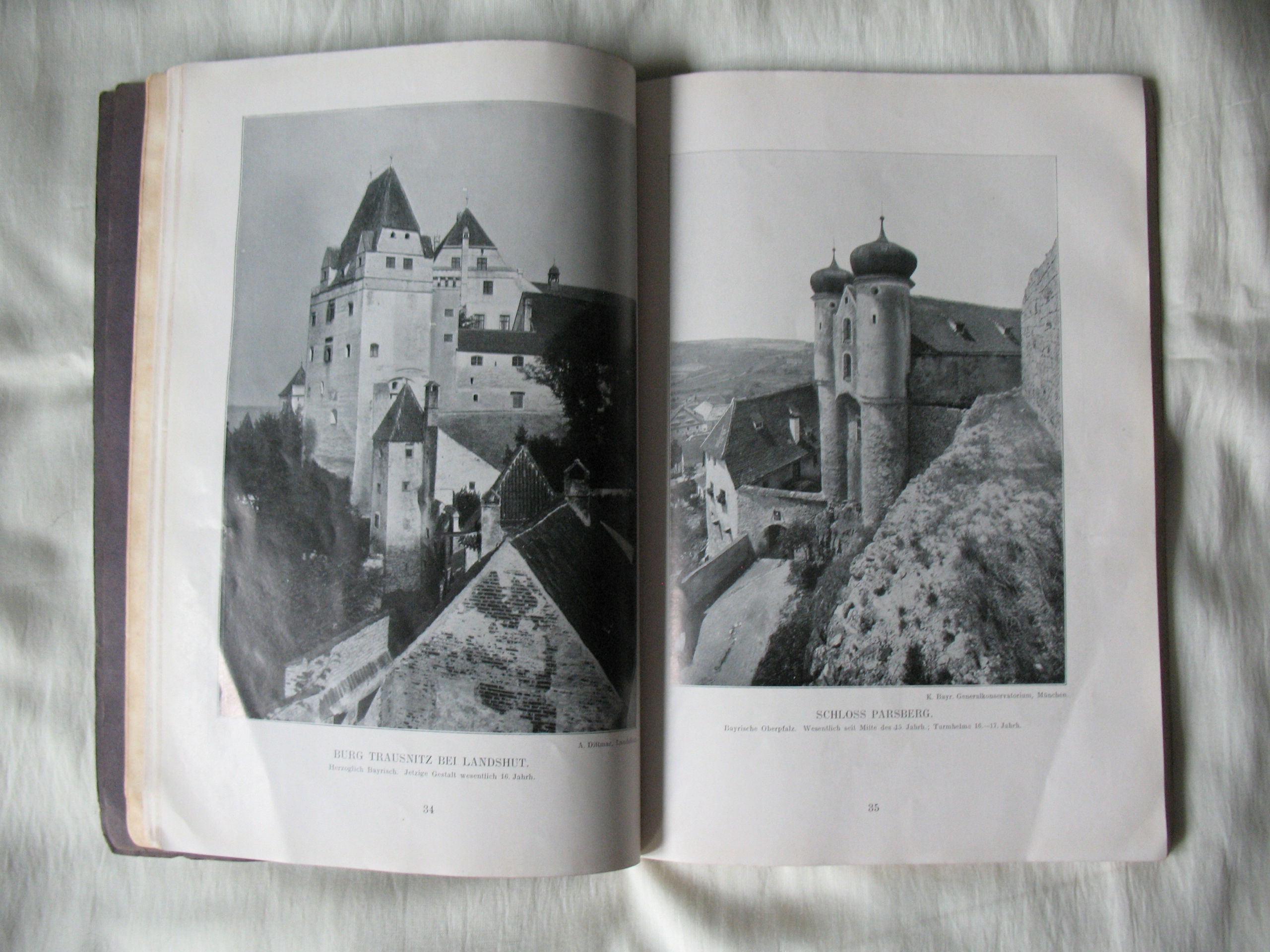 Stara, oryginalna książka-album: Deutsche Burgen-Zamki Niemieckie. Oryginał. Papier kredowy. 128 stron + miękka okładka - kompletna. W środku także zdjęcia zamków obecnie leżących w Polsce. Przykładowa zawartość na skanach. Datowanie: lata międzywojenne. Wymiary: 190 x 265 mm. Stan zachowania: według mnie -db, podniszczona okładka i grzbiet, na kilku stronach niewielkie naddarcia na obrzeżach, niewielkie zabrudzenia, na 2 stronach z tekstem porysowania kredką, wszystko widoczne na skanach. Zapraszam do zakupów.
