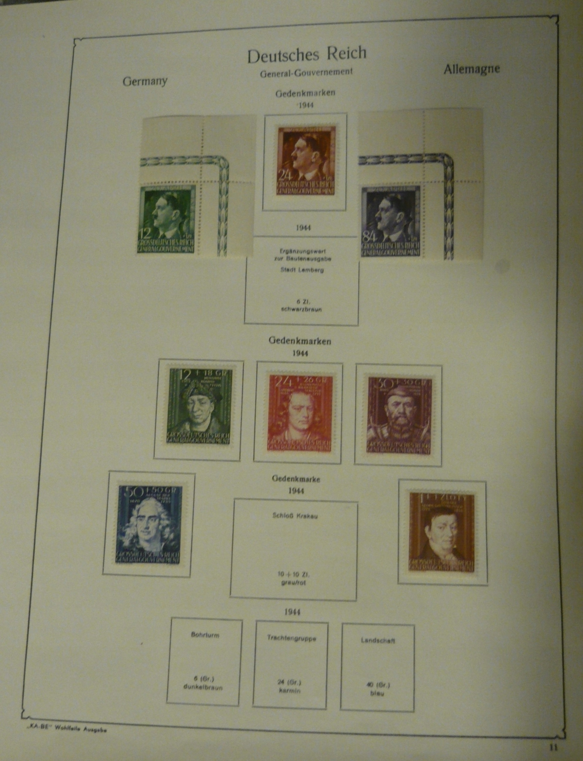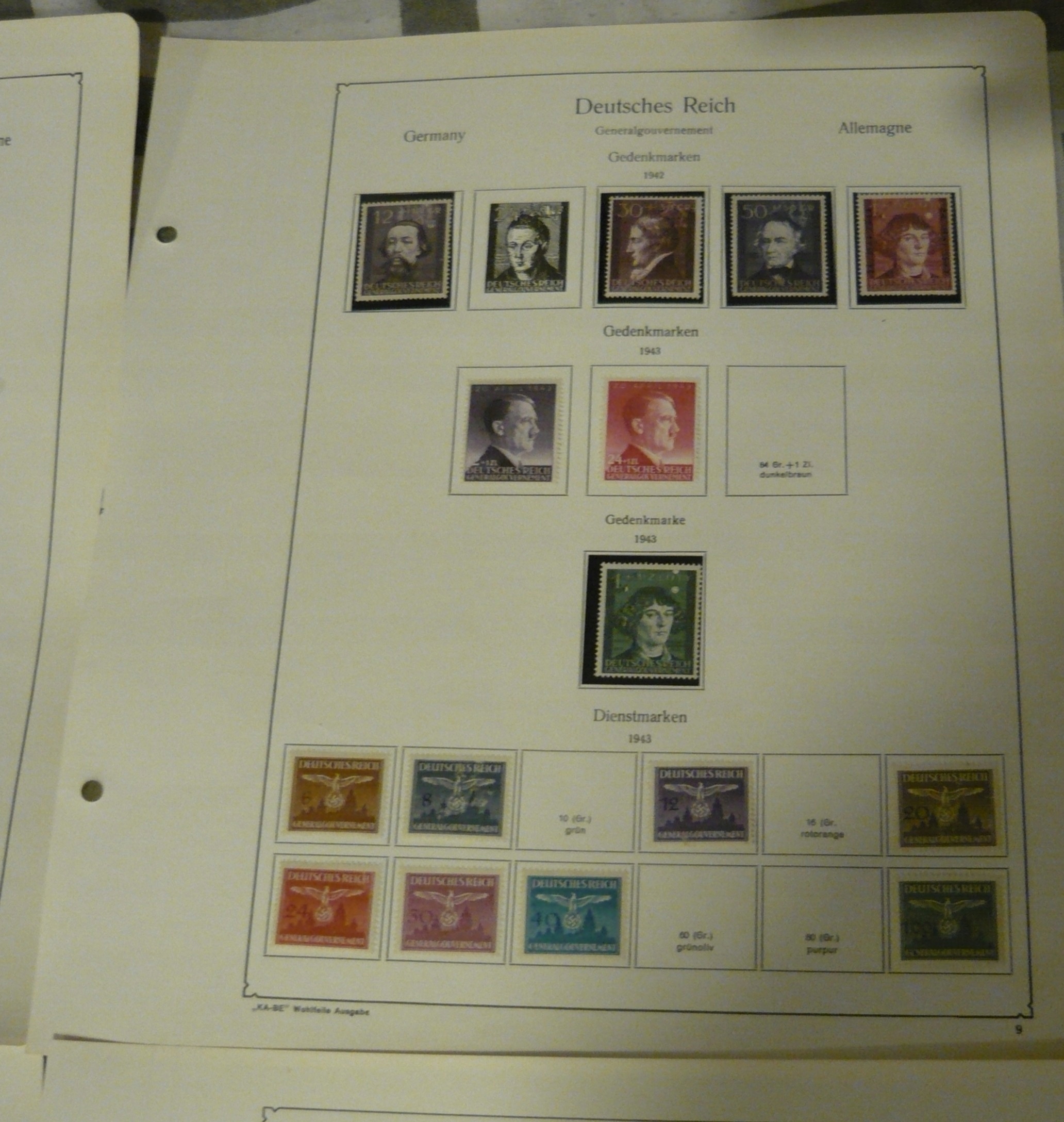 9 kart z dawnego albumu ze znaczkami gdzie znaczki wklejało się na podlepkach