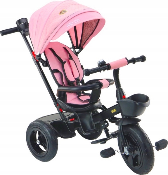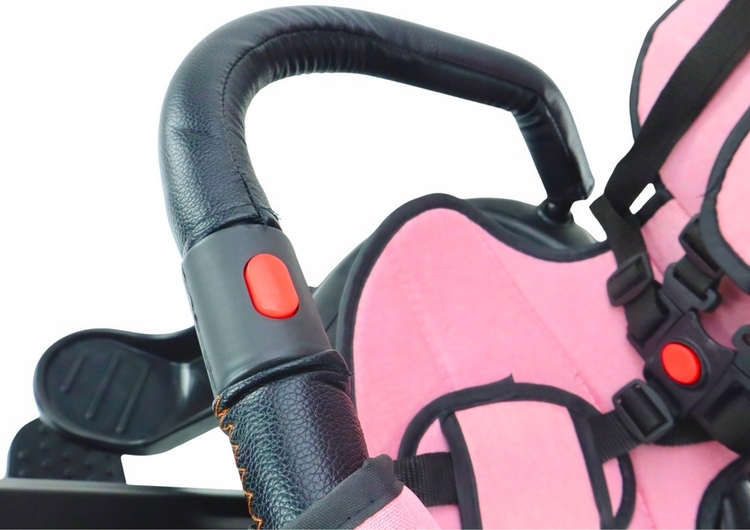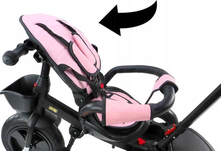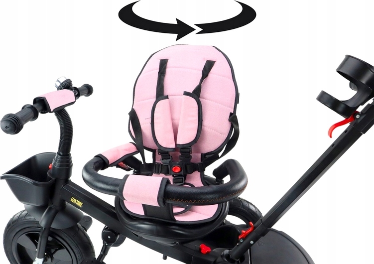 Pompowane koła wysokiej jakości zapewniają komfort jazdy, a pięciopunktowe, zapinane pasy i blokada tylnych kół, zwiększają bezpieczeństwo dziecka podczas użytkowania rowerka.