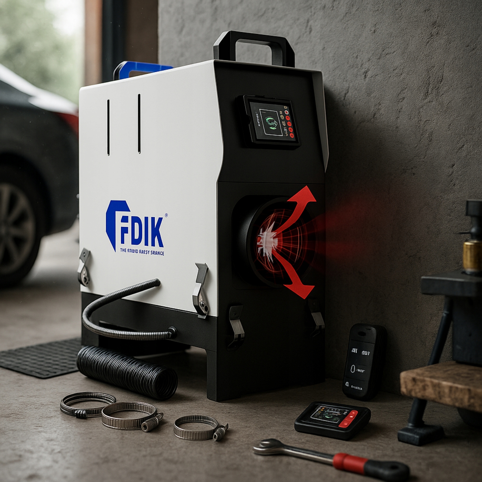 Oryginalna nagrzewnica postojowa marki FDIK o mocy 8kW. To kompletne, przenośne rozwiązanie typu "all-in-one", które nie wymaga skomplikowanego montażu. Wlewasz paliwo, podłączasz zasilanie i natychmiast podnosisz temperaturę w otoczeniu.