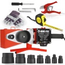 Нагревательные матрицы, входящие в комплект, позволяют работать с трубами диаметром 16 мм, 20 мм, 25mm, 32mm, 40mm, 50mm oraz 63mm. Каждая матрица покрыта тефлоновым покрытием, что обеспечивает высокую качество звонков.