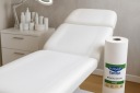 Realistyczna aranżacja gabinetu kosmetycznego prezentująca jednorazowe prześcieradło papierowe w codziennym użytkowaniu. Gładka powierzchnia papieru oraz jego odpowiednia grubość zapewniają komfort klienta i skuteczną ochronę powierzchni zabiegowej podczas pracy.