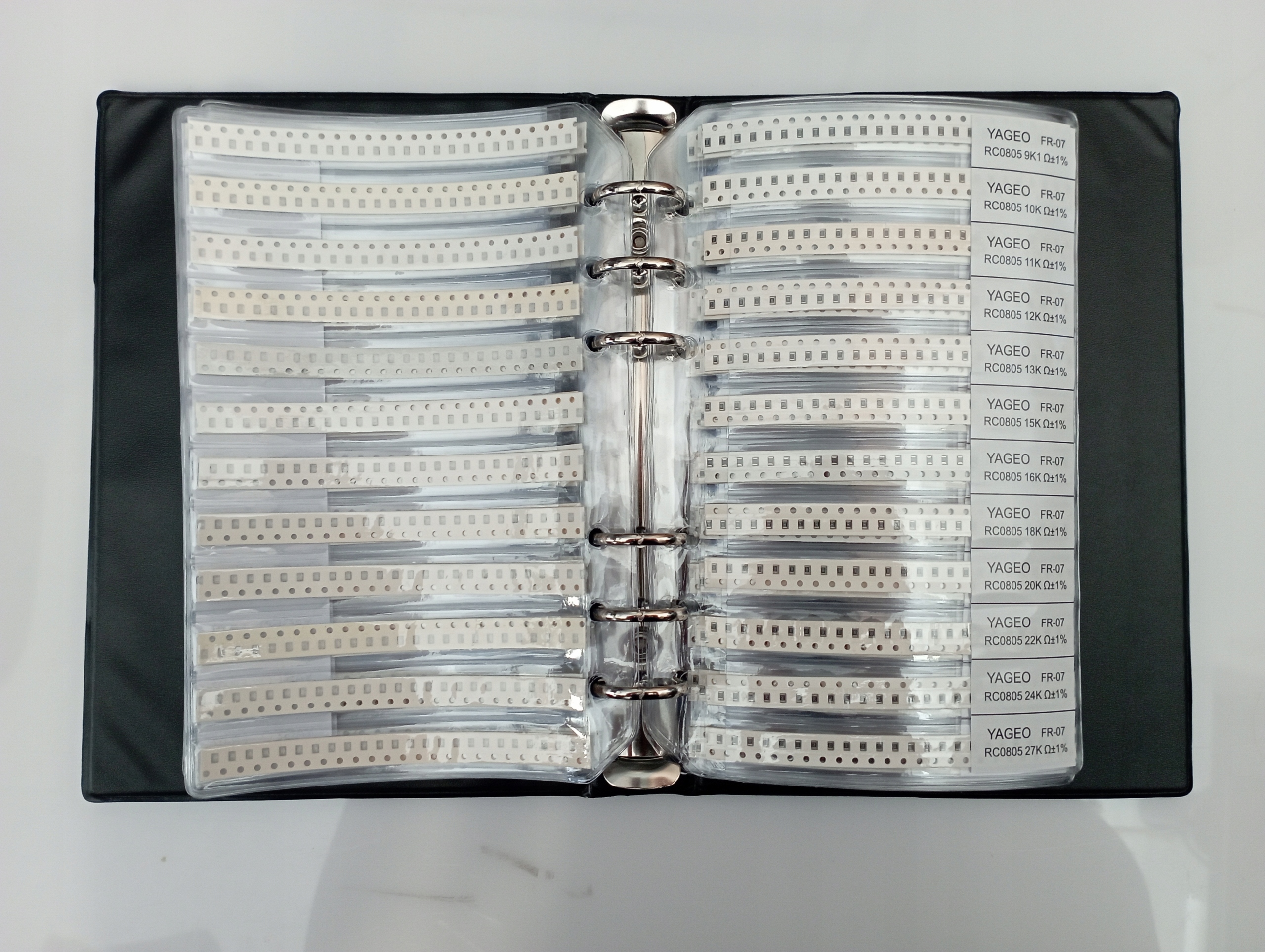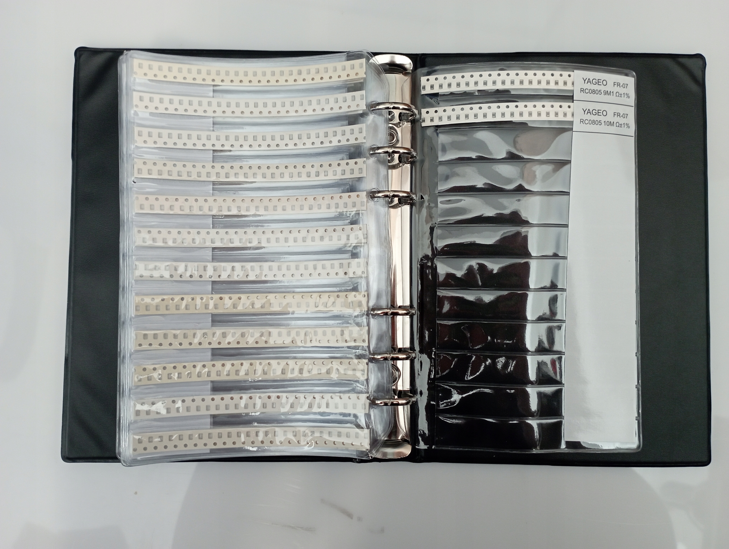 Książka rezystorów SMD o rozmiarze 0805 i dokładności 1%, 170 różnych wartości, od 0 do 10M Ohm, 25 szt. każdy, w sumie 4250 rezystorów.