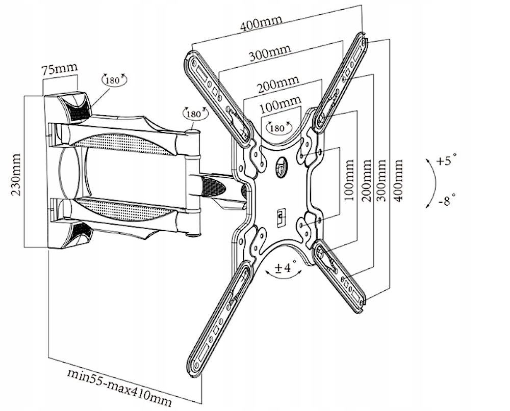 W przeciwieństwie do wielu innych uchwytów o podobnej konstrukcji, nasz produkt posiada podwójne mocowanie ramienia do płyty ściennej. Zapewnia to stabilność nawet przy dużej wadze telewizora.