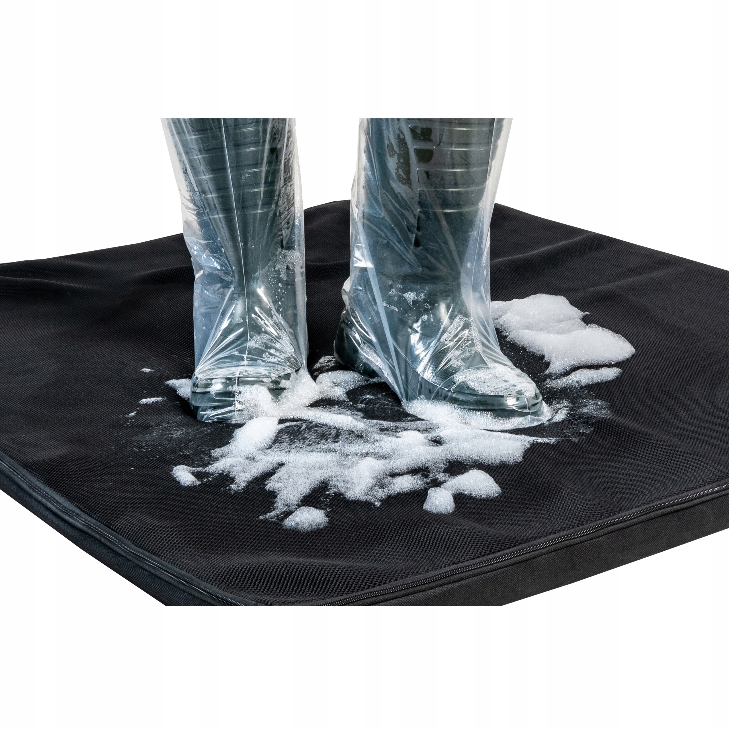 ✅ Warstwa górna – wierzchnia wykonana jest z bardzo mocnej dzianiny trójwarstwowej o doskonałych właściwościach higroskopijnych, dzięki temu roztwór preparatu dezynfekcyjnego przepływa w obie strony. Materiał ten cechuje się dużą wytrzymałością na rozrywanie. Warstwa ta spełnia także funkcję wycieraczki, dzięki czemu wszelkiego rodzaju patogeny – wirusy, bakterie lub grzyby są skutecznie usuwane z butów, kopyt, racic i kół samochodów i pozostają na jej powierzchni, dzięki czemu nie przedostają się do warstwy chłonnej i nie dezaktywują środka dezynfekcyjnego.