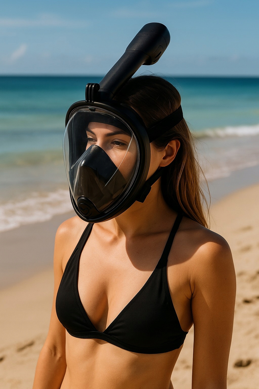 Maska obejmuje całą twarz, dzięki czemu możesz oddychać zarówno nosem, jak i ustami. To ogromna różnica w porównaniu z tradycyjnymi fajkami – koniec z dyskomfortem i zaciskaniem ust na rurce.