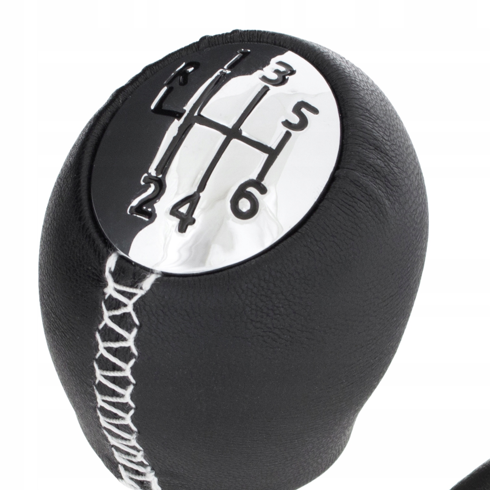 Kolor: czarna gałka (ekoskóra) szyta białą nitką + czarny mieszek z chromową ramką