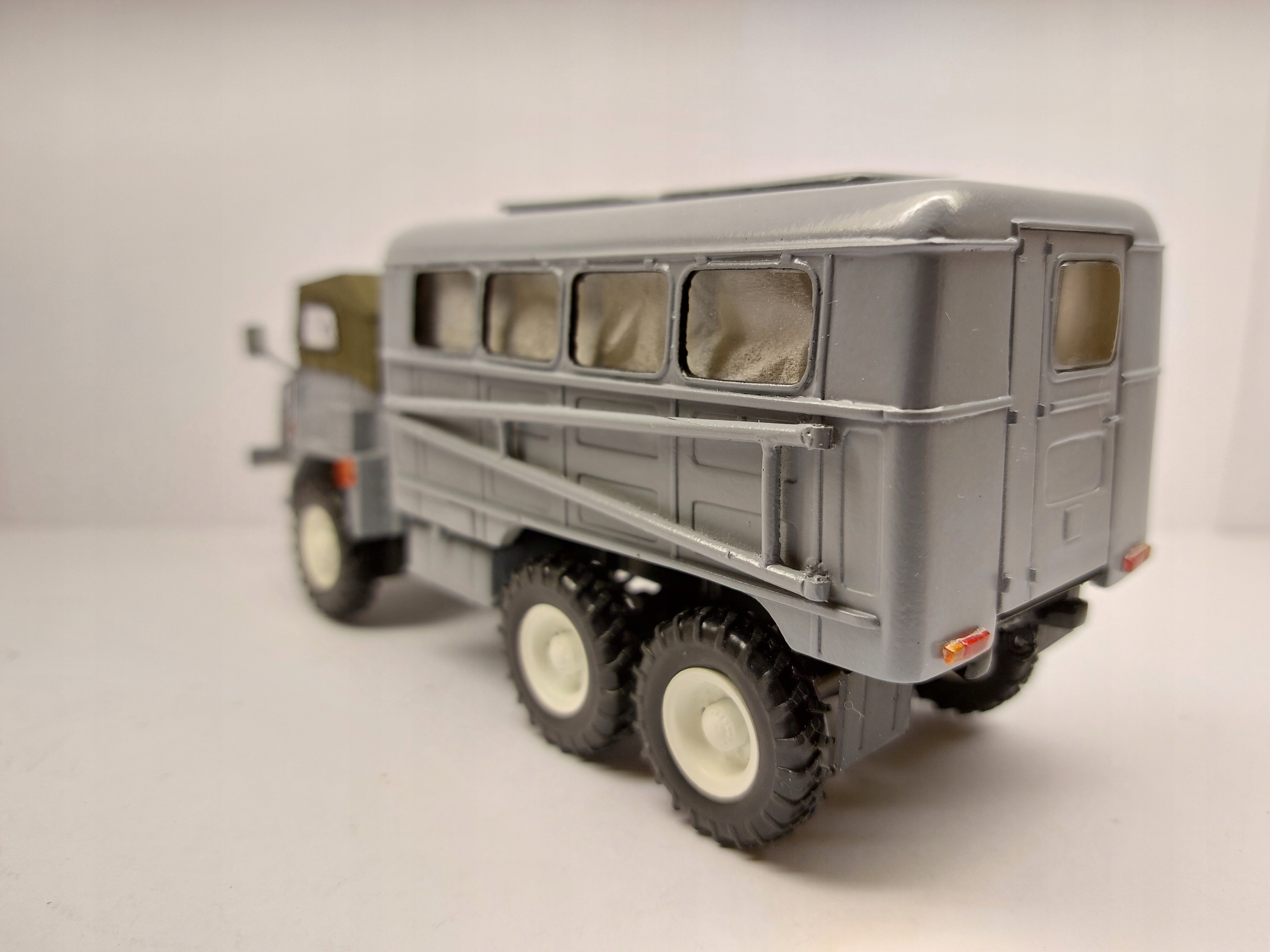 Sprzedam model star 66 z zabudową warsztatową jelcz w skali 1:43. Ręcznie wykonana konwersja na bazie modelu z kultowych ciężarówek PRLu oraz zabudowy żywicznej. Model wykonany na podstawie zdjęć prawdziwego samochodu umieszczonych w folderze reklamowym. Stan widoczny na zdjęciach.